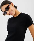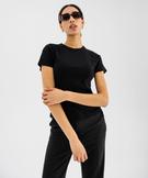 Tee-shirt manches courtes et col rond en maille côtelée femme noir