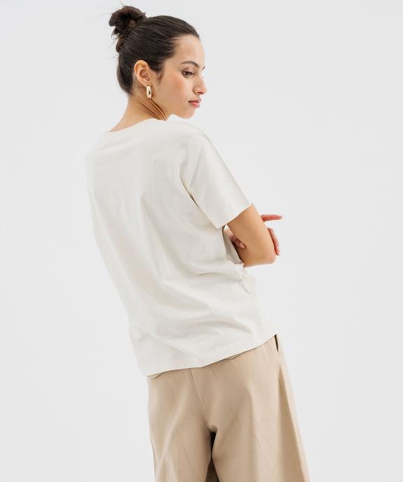 Tee-shirt manches courtes et col rond motif coquillage femme blanc chine