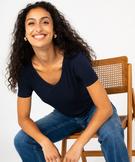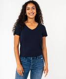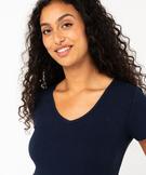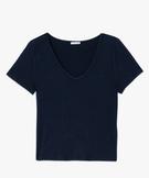 Tee-shirt manches courtes et col V en maille côtelée femme - LuluCastagnette navy