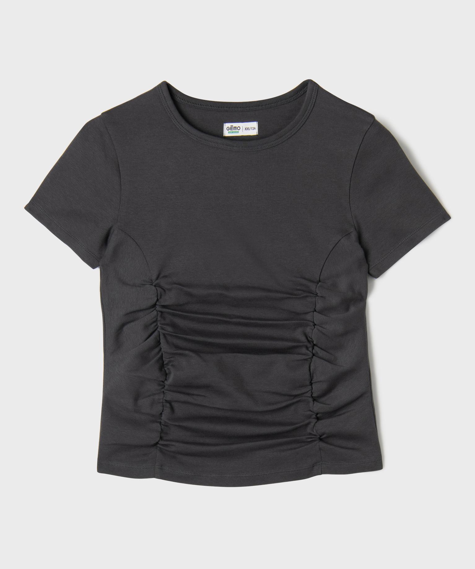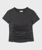 Tee-shirt manches courtes froncé fille gris fonce