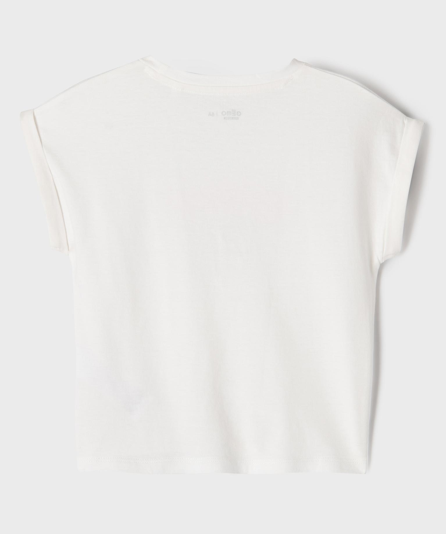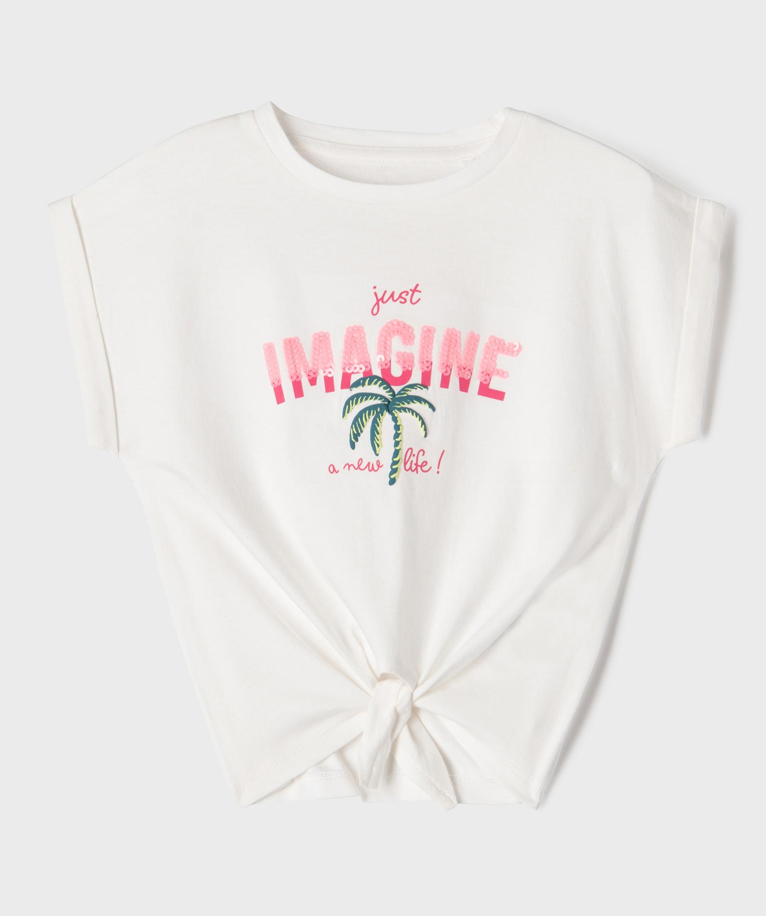 Tee-shirt manches courtes imprimé avec liens à nouer fille blanc