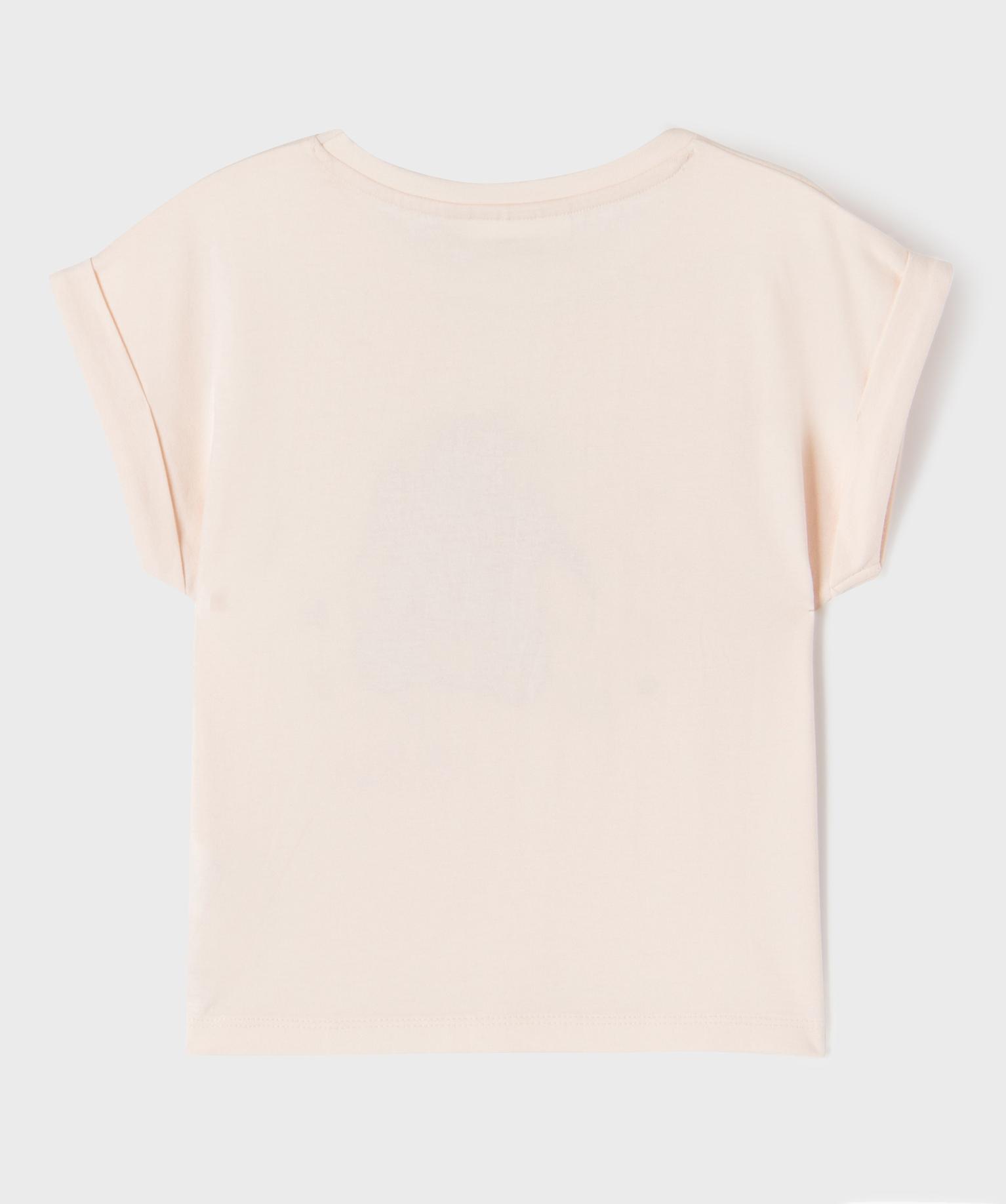 Tee-shirt manches courtes imprimé coupe loose fille - Stitch rose