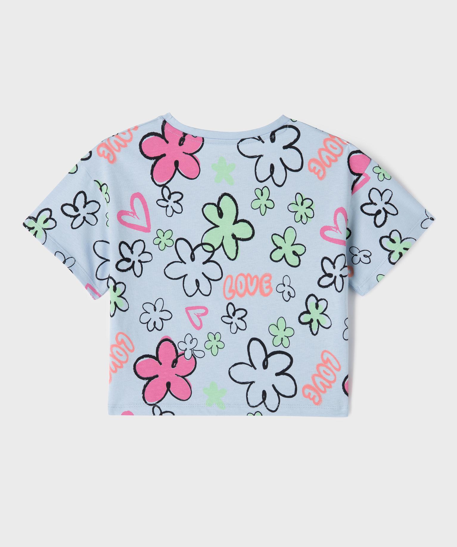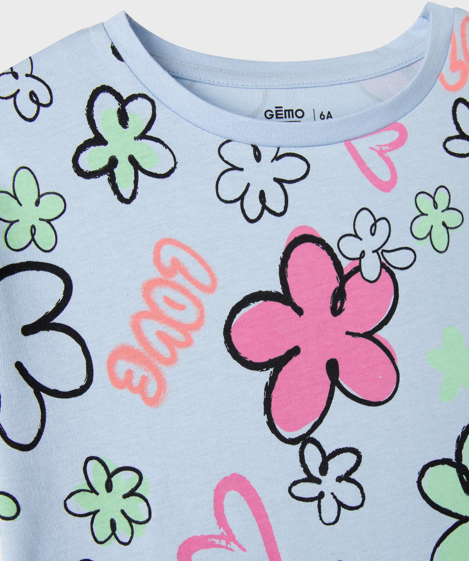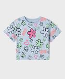 Tee-shirt manches courtes imprimé coupe oversize fille bleu