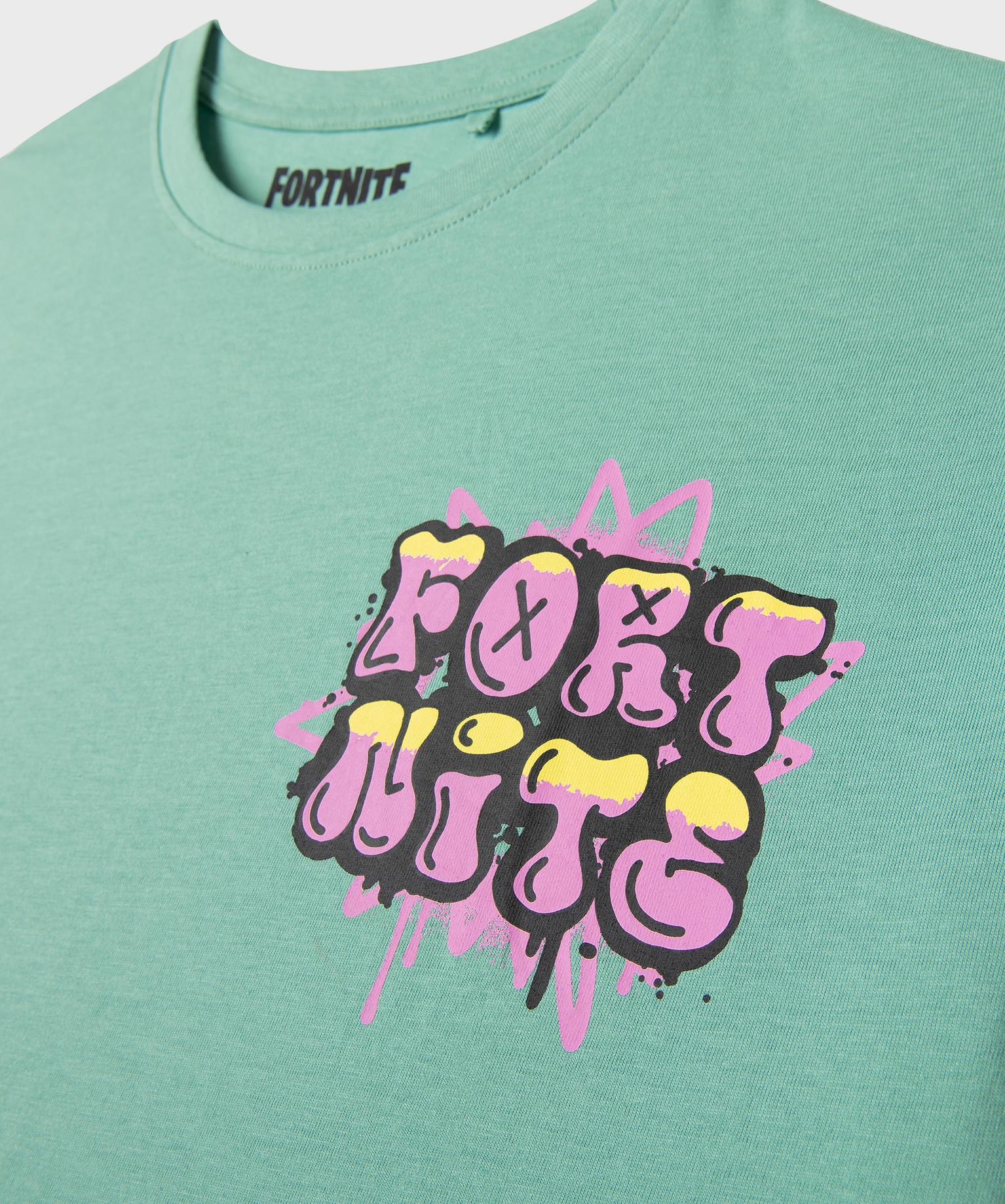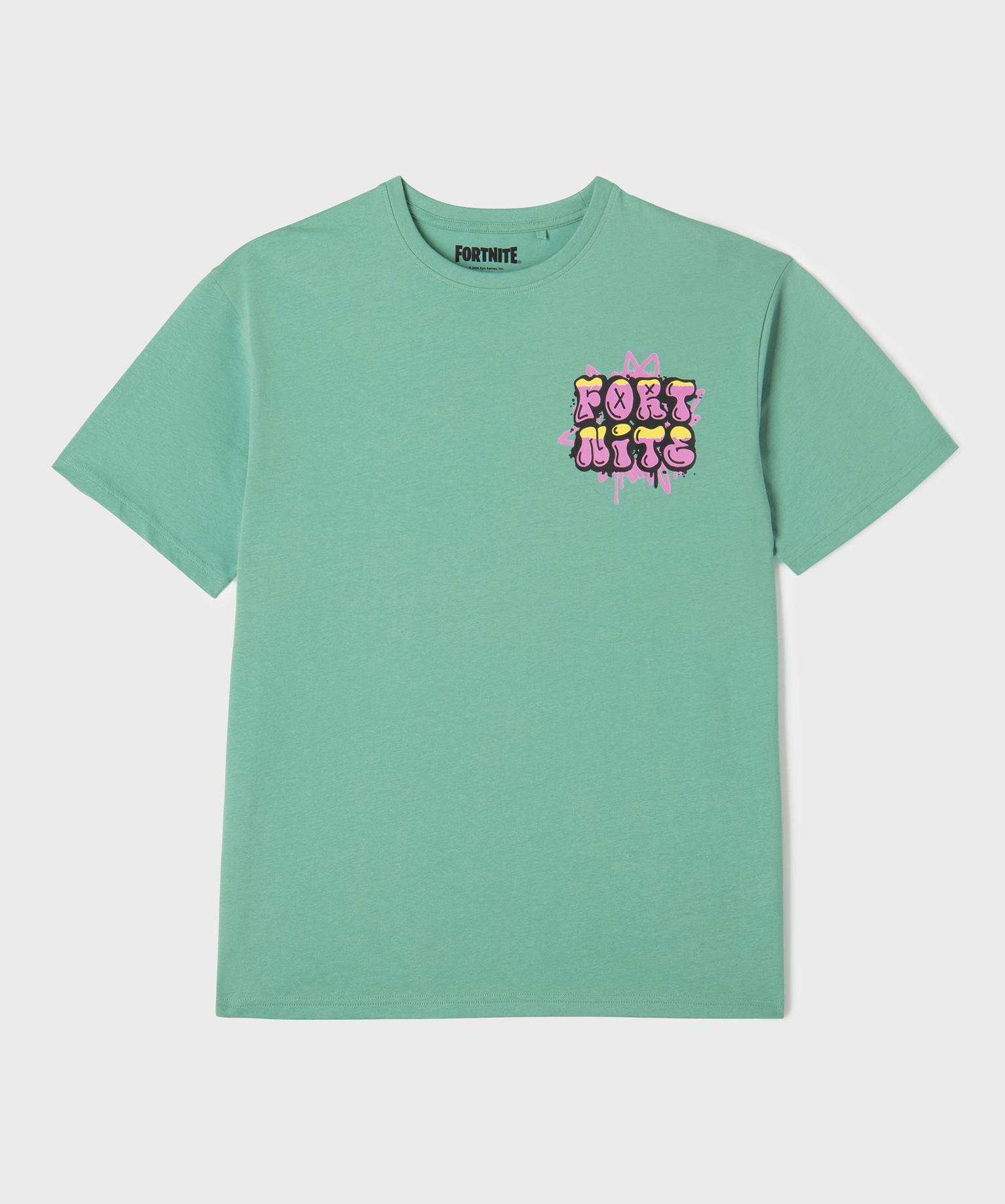 Tee-shirt manches courtes imprimé devant et dos garçon - Fortnite vert clair