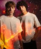 Tee-shirt manches courtes imprimé devant et dos mixte ecru