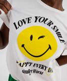 Tee-shirt manches courtes imprimé femme - Smiley blanc
