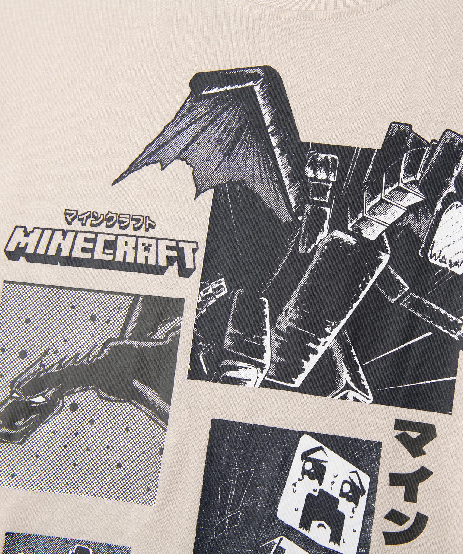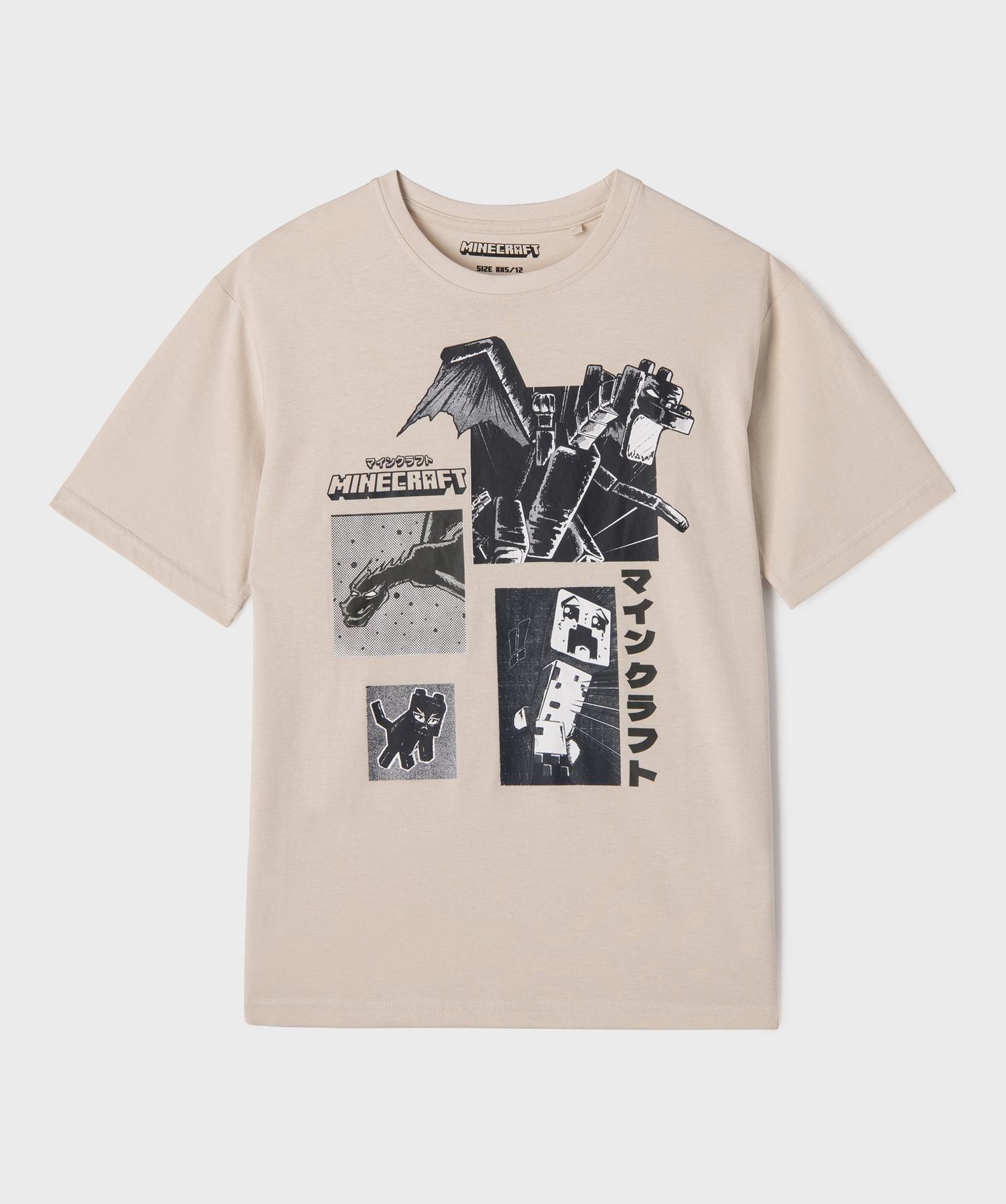 Tee-shirt manches courtes imprimé garçon - Minecraft beige