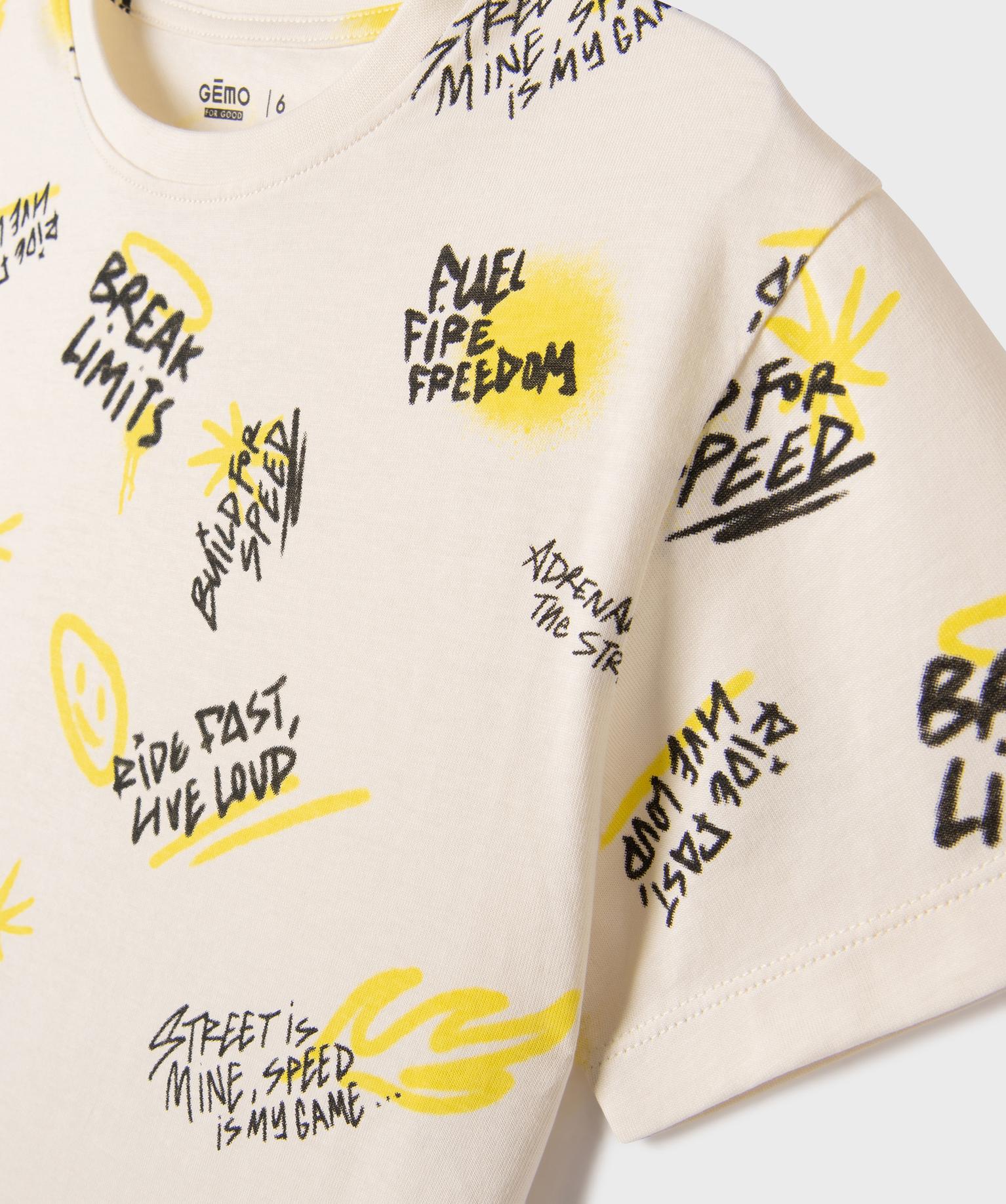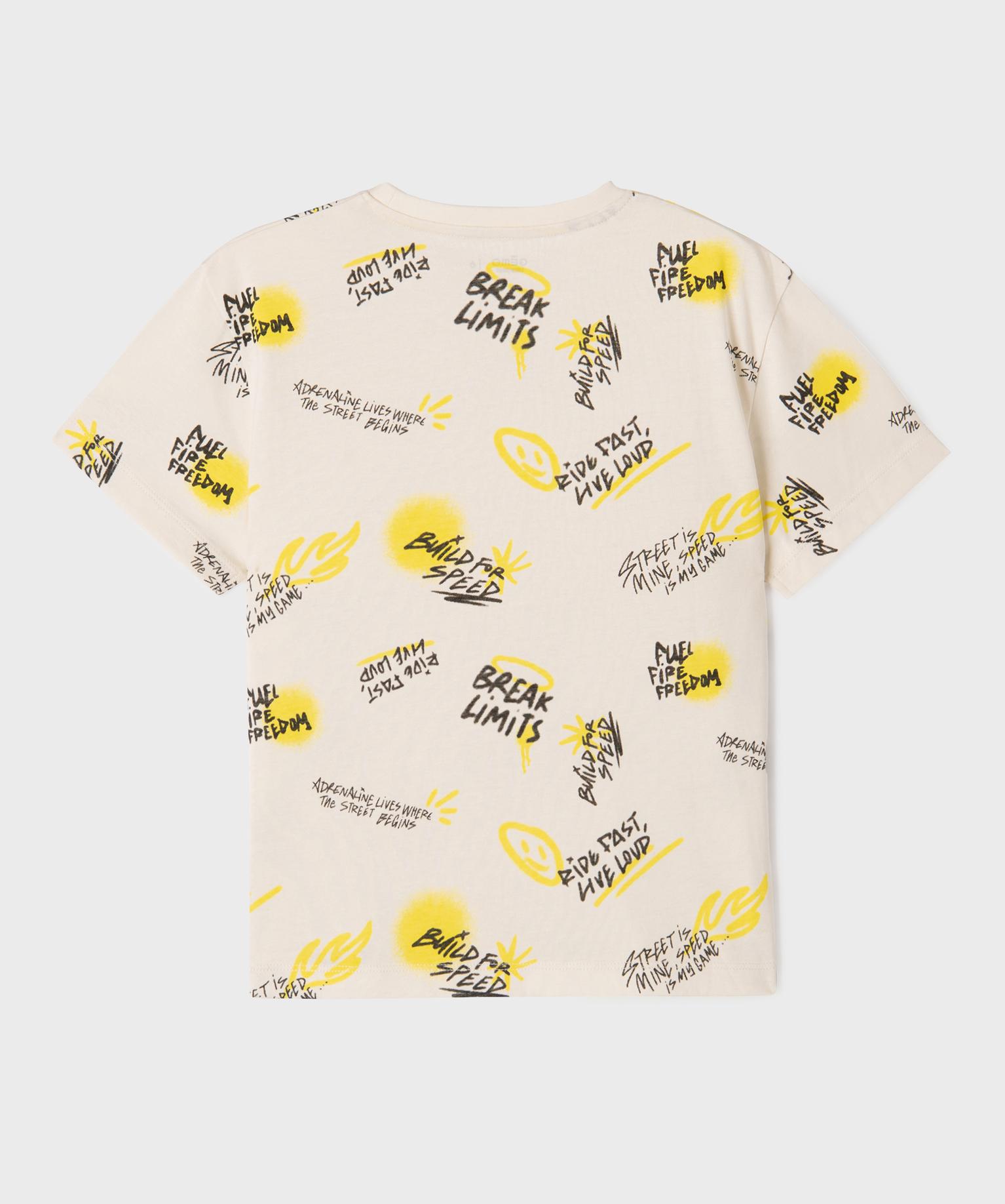 Ce tee-shirt garçon affiche un style résolument streetwear avec ses touches fluo et ses inscriptions façon graffitis. Sa coupe ample ultra confortable est idéale pour bouger librement tout au long de la journée. Plein d’énergie et de caractère, ce tee-shirt à manches courtes accompagne les enfants dans toutes leurs aventures urbaines. Il se porte avec un jean large et une paire de baskets pour un look cool et tendance.