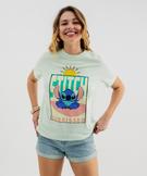 Tee-shirt manches courtes imprimé patiné femme - Stitch vert clair