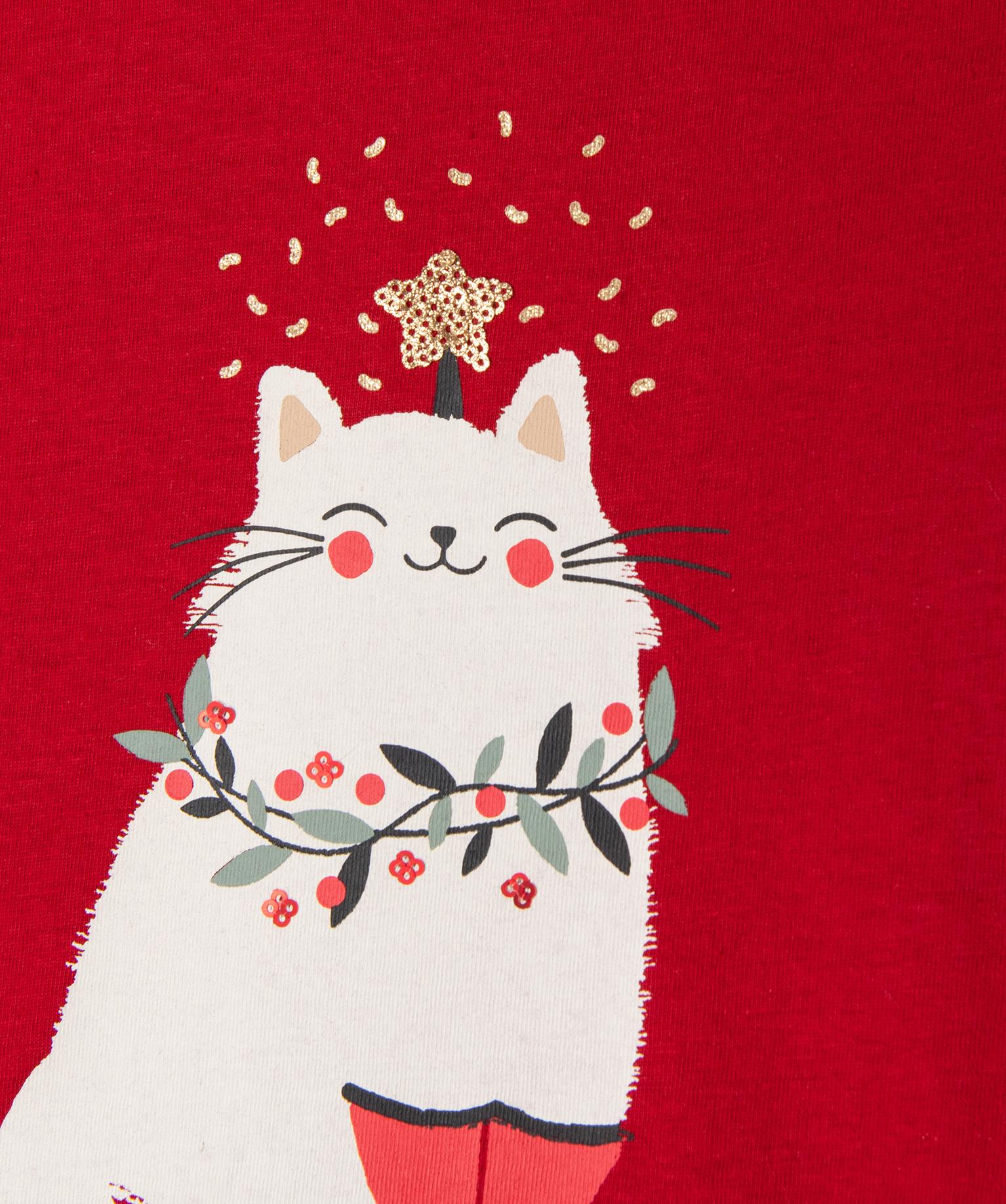 Plongez dans la magie des fêtes avec ce tee-shirt manches courtes fille de la collection Noël ! 100 % coton doux, il offre un confort idéal au quotidien. Son encolure ronde à finition biais assure une tenue agréable. La couleur intense, fidèle aux codes de Noël, met en valeur un adorable imprimé chat orné d’une guirlande et d'une étoile en sequins brillants. Un modèle pétillant et festif, parfait pour célébrer les fêtes de fin d'année avec style et bonne humeur !