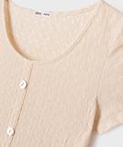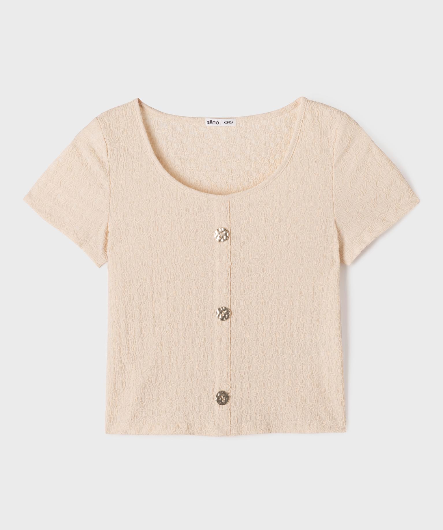 Tee-shirt manches courtes look chemise fille beige clair