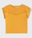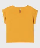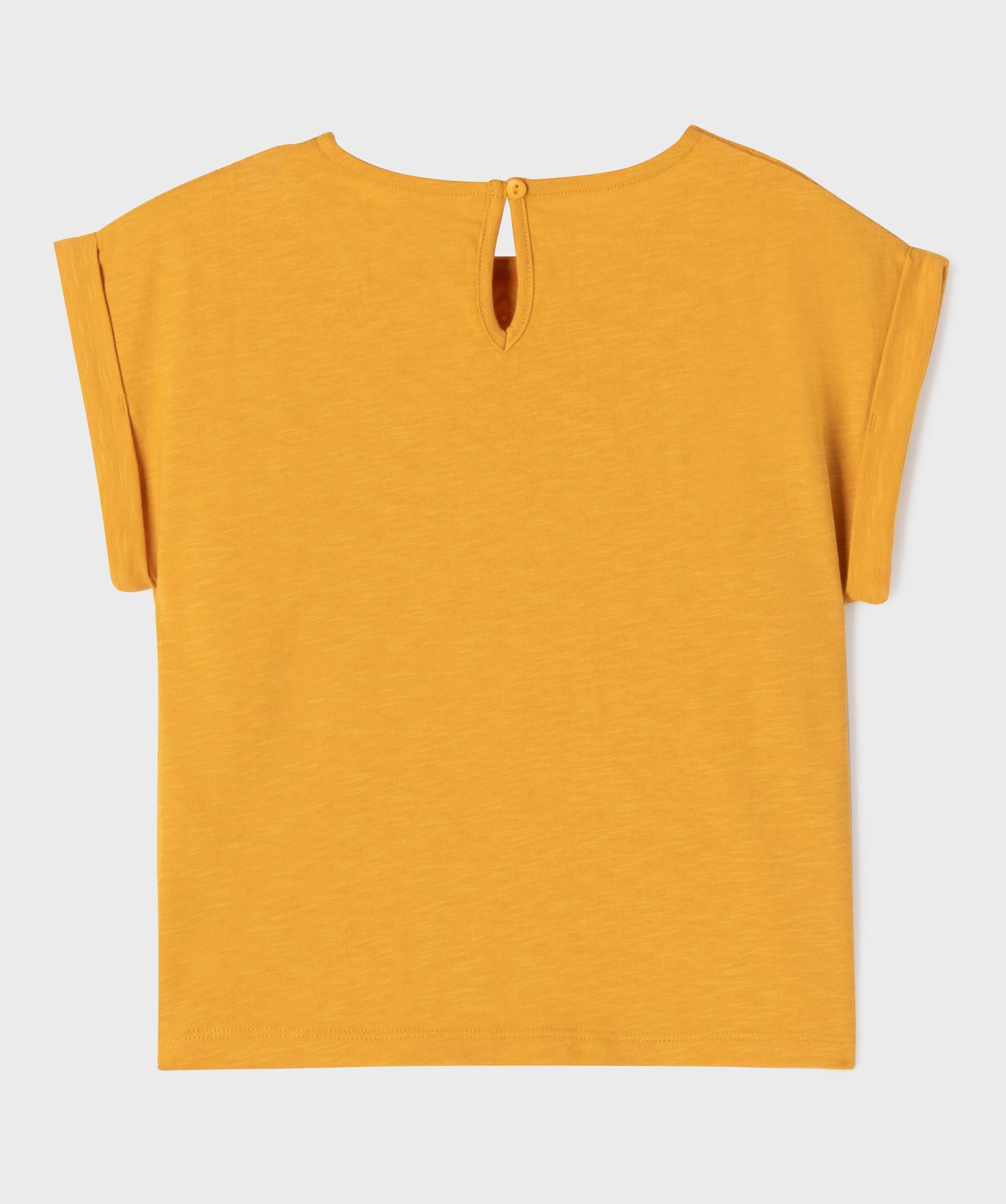 Tee-shirt manches courtes loose à plastron fille jaune fonce
