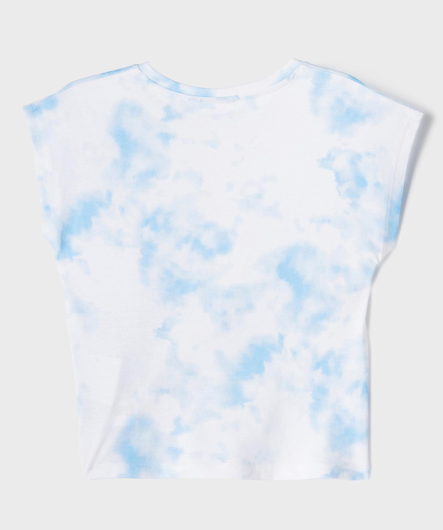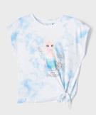 Tee-shirt manches courtes loose tie-and-dye imprimé fille - La Reine des Neiges bleu clair