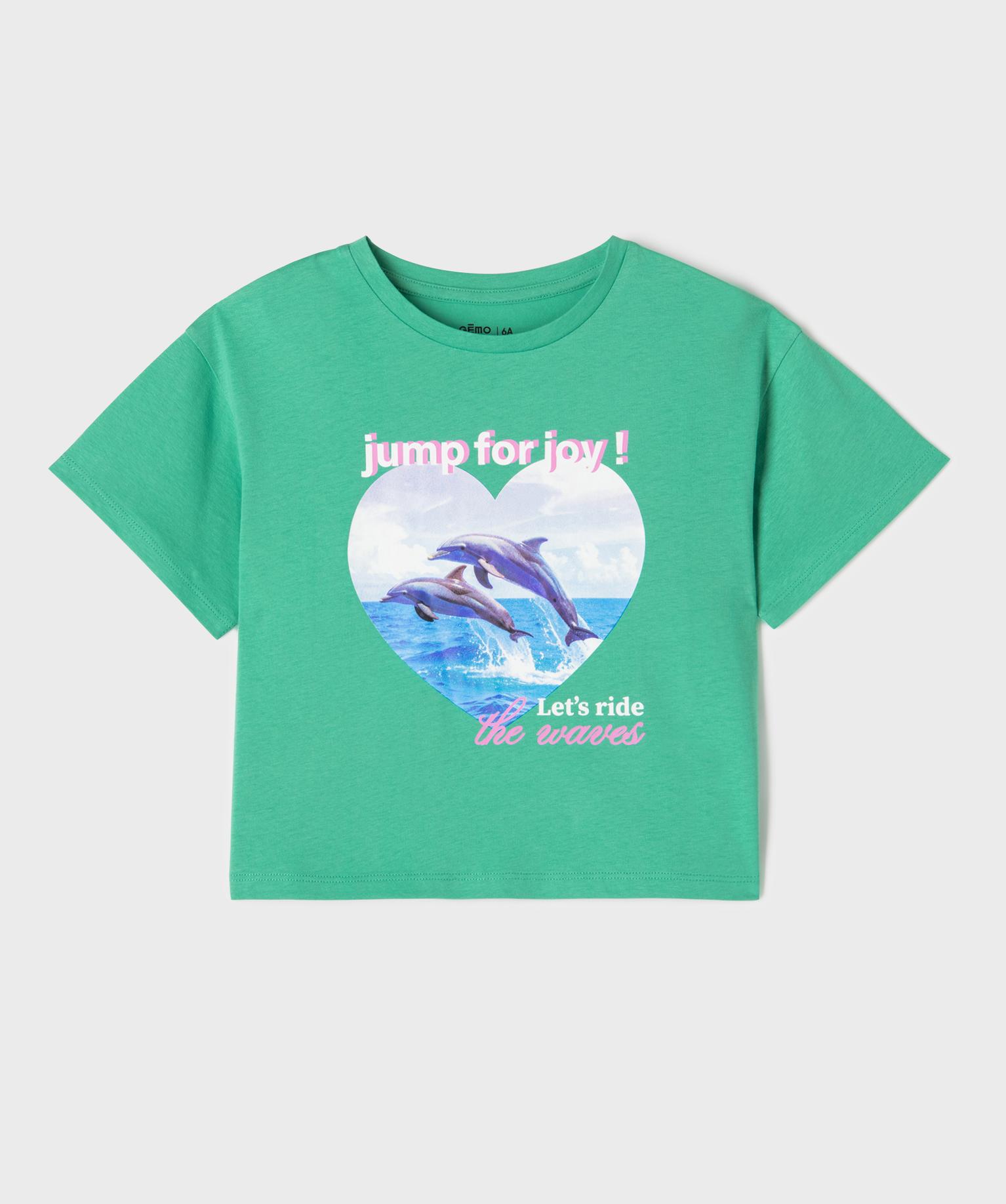 Tee-shirt manches courtes oversize à motif fille vert