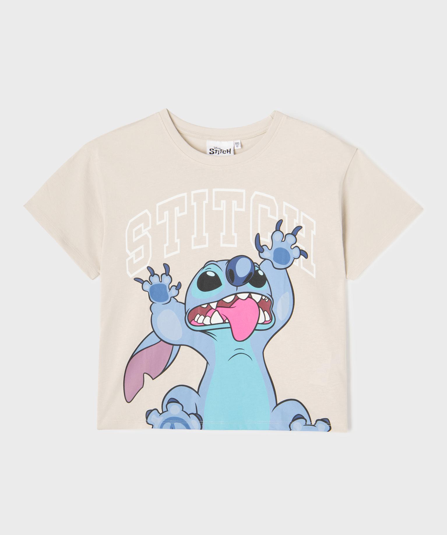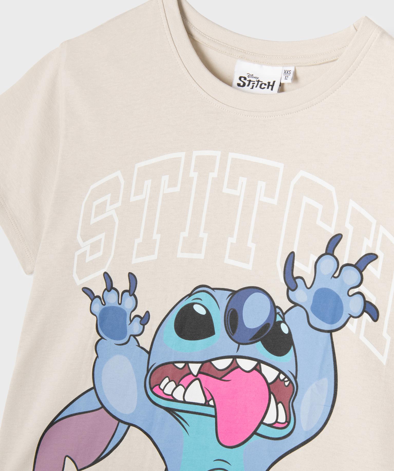 Tee-shirt manches courtes oversize à motif Stitch fille - Disney beige