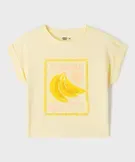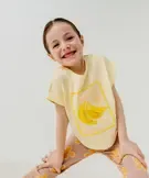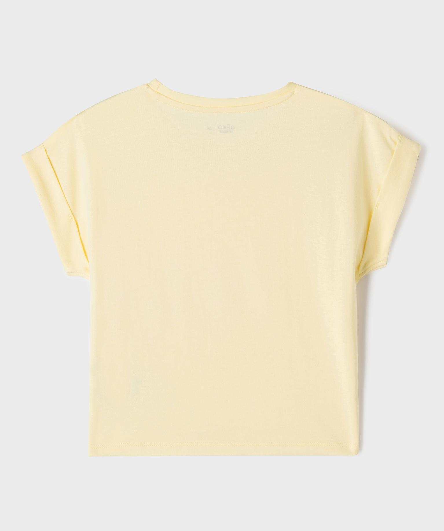 Tee-shirt manches courtes oversize à motifs brodés fille jaune clair