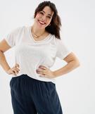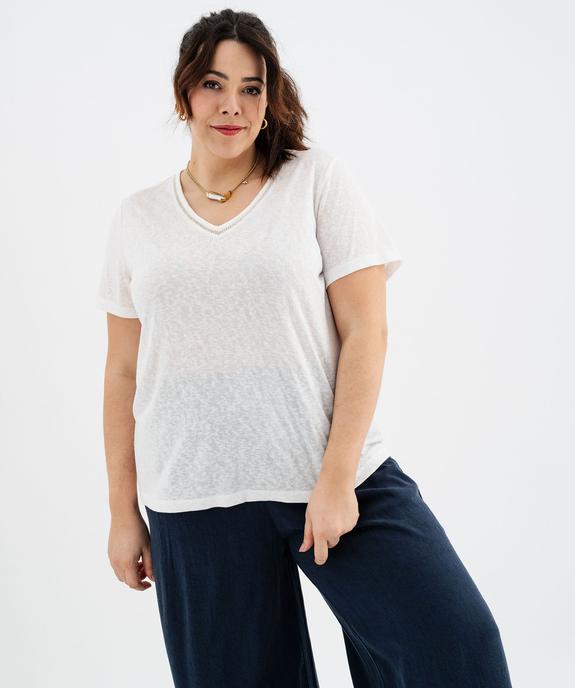 Tee-shirt manches courtes pailleté à col V femme grande taille beige