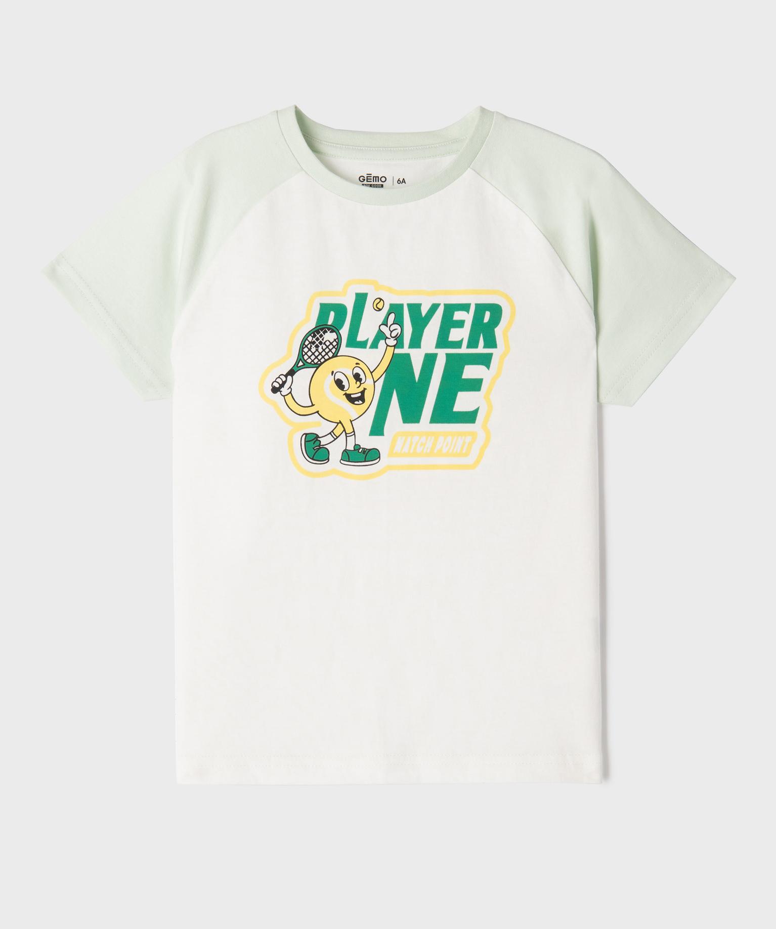 Avec son grand motif tennis, ce tee-shirt manches courtes insuffle une allure sportive et dynamique au dressing estival. Sa coupe droite intemporelle est sublimée par des manches raglan au coloris contrastant. Un détail graphique qui apporte du confort et renforce le côté sportswear du tee-shirt garçon. Confectionné en jersey de coton, il offre une sensation agréable sur la peau. Facile à associer avec un short, un bermuda ou un jean. Dos uni. Col rond en bord-côte contrastant, assorti aux manches.