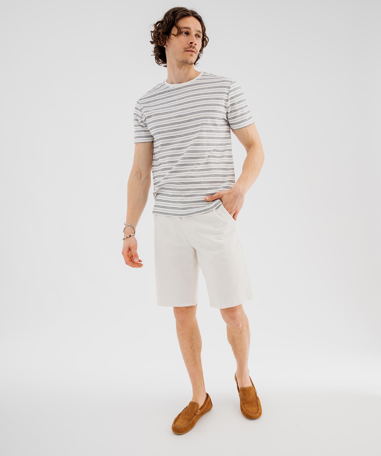 Tee-shirt manches courtes rayé en maille piquée homme blanc
