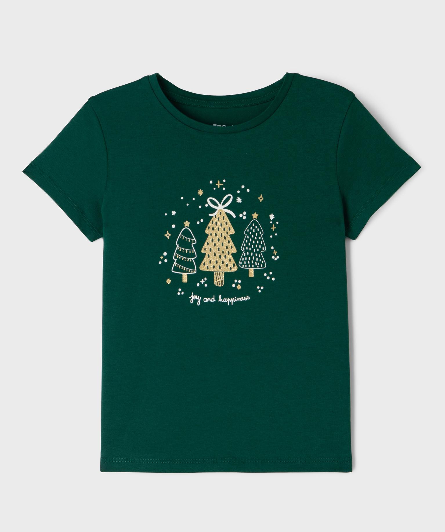 Tee-shirt manches courtes spécial Noël fille vert