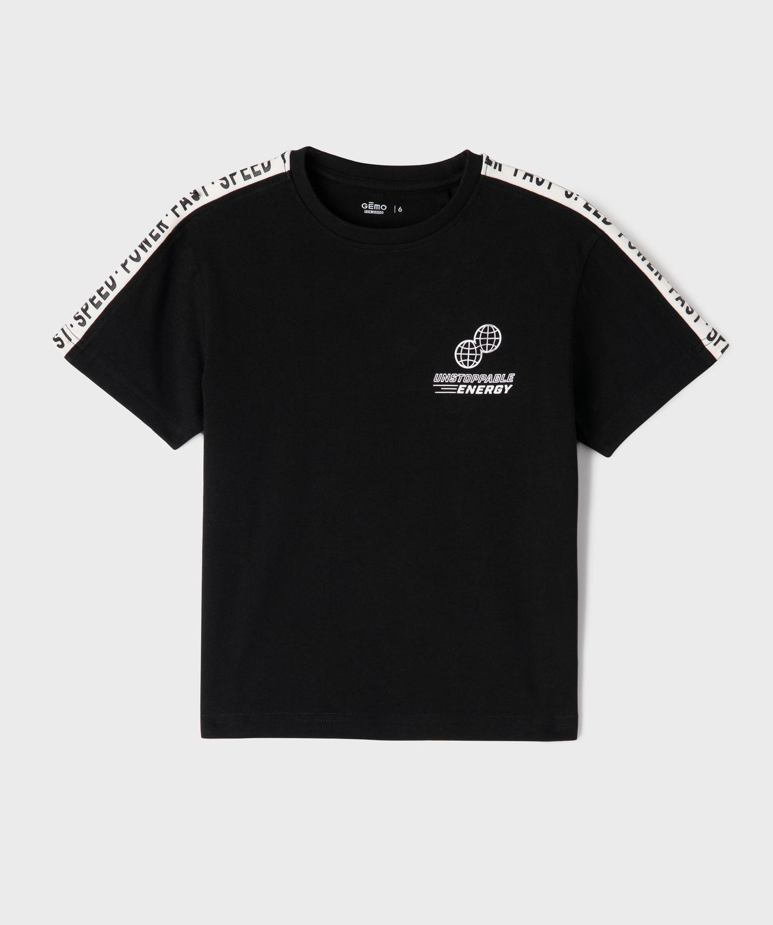 Pour un look sportif sous le signe du confort, optez pour ce tee-shirt garçon avec bandes contrastantes sur le dessus des manches et inscription dynamique sur la poitrine. Un tee-shirt à manches courtes confectionné en coton et coton recyclé offrant une bonne circulation de l’air pour un maximum de confort pendant les entrainements. Associé à un short de sport ou un pantalon de jogging, il compose une tenue sportive pratique et tendance pour les enfants actifs.