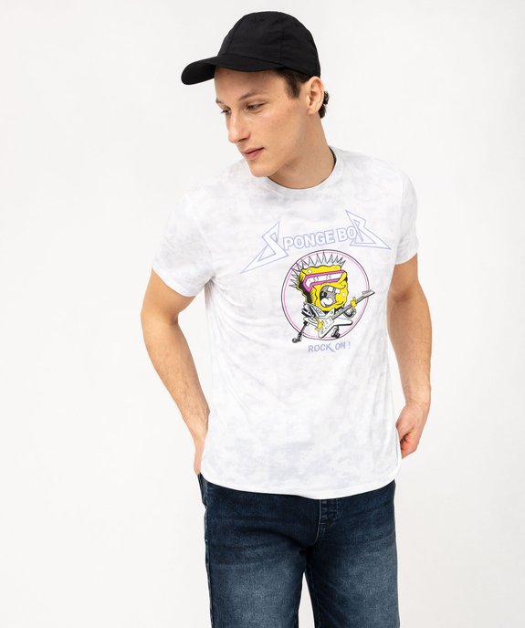 Tee-shirt manches courtes tie-and-dye imprimé homme - Bob l'éponge blanc