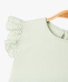 Tee-shirt manches courtes volantées en broderie bébé fille[MISSING] vert clair