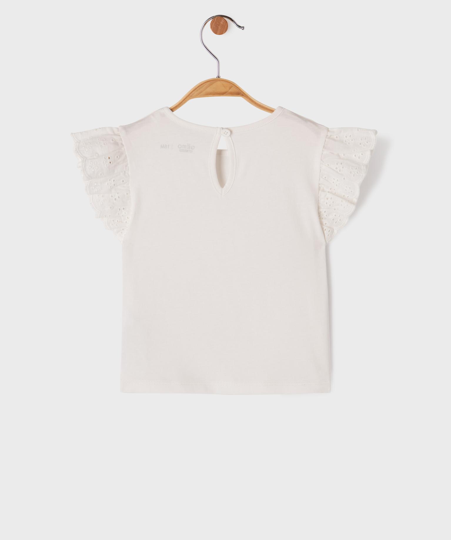 Tee-shirt manches courtes volantées en broderie bébé fille blanc