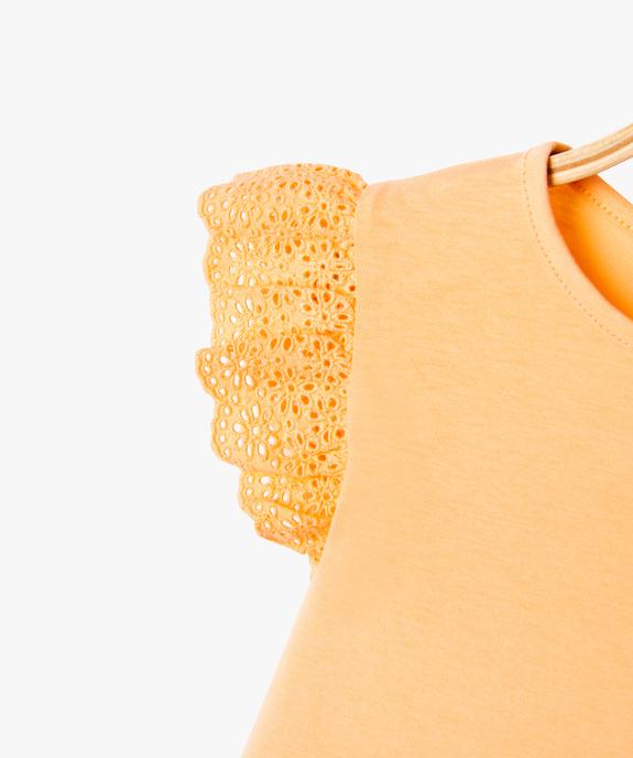 Tee-shirt manches courtes volantées en broderie bébé fille orange clair