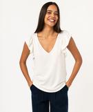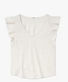 Tee-shirt manches courtes volantés à paillettes femme blanc chine