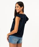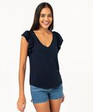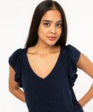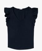 Tee-shirt manches courtes volantés à paillettes femme bleu fonce