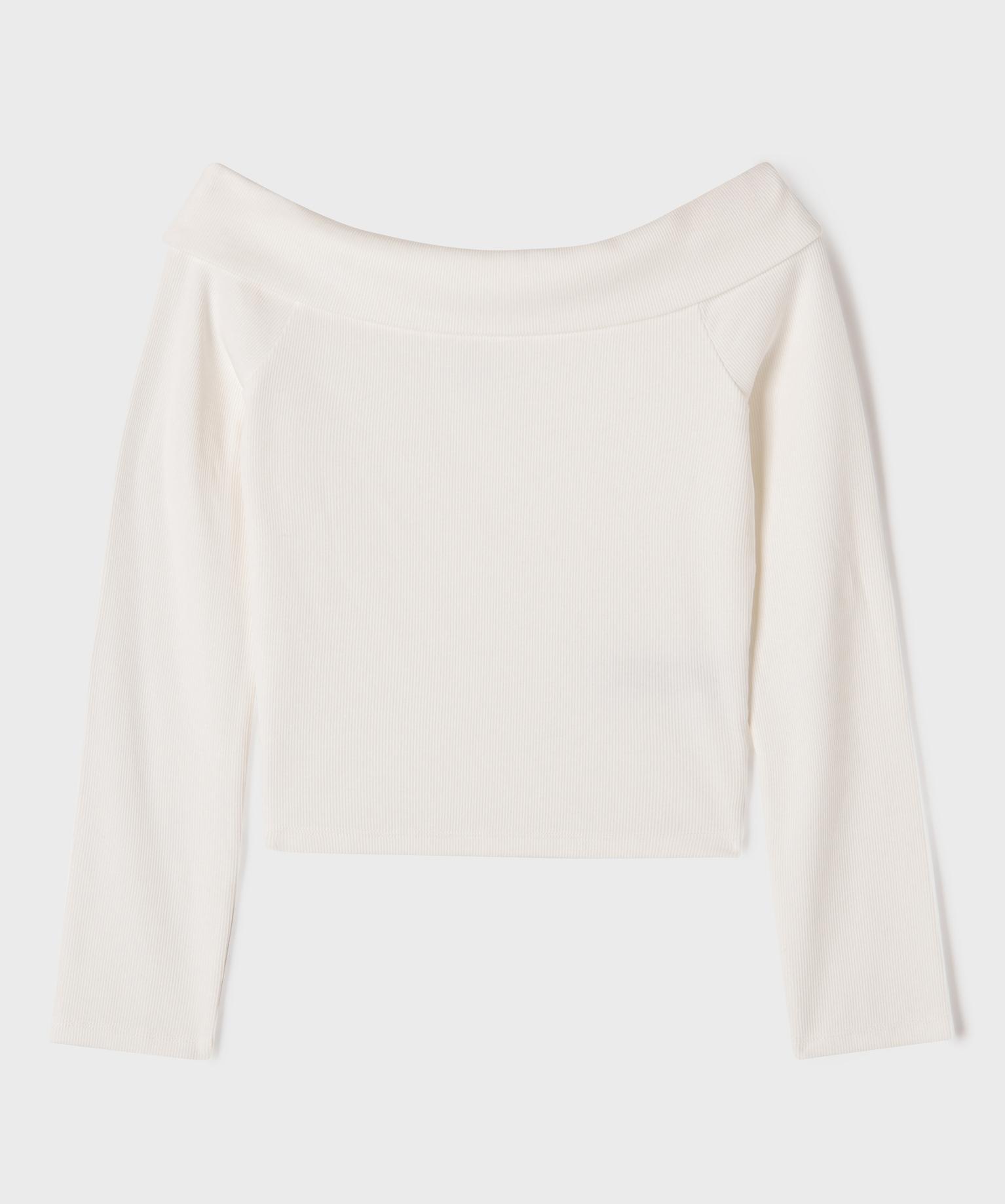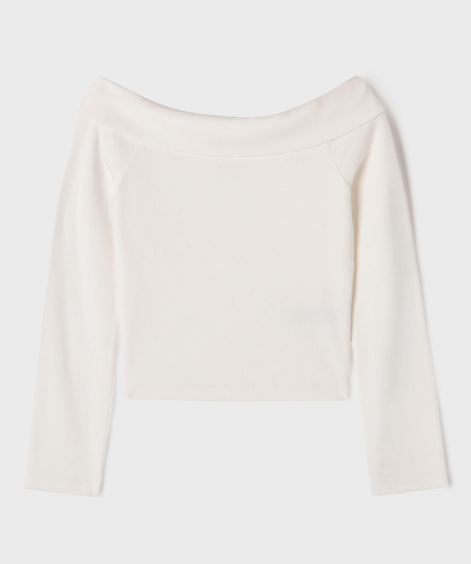 Tee-shirt manches longues à col Bardot fille blanc