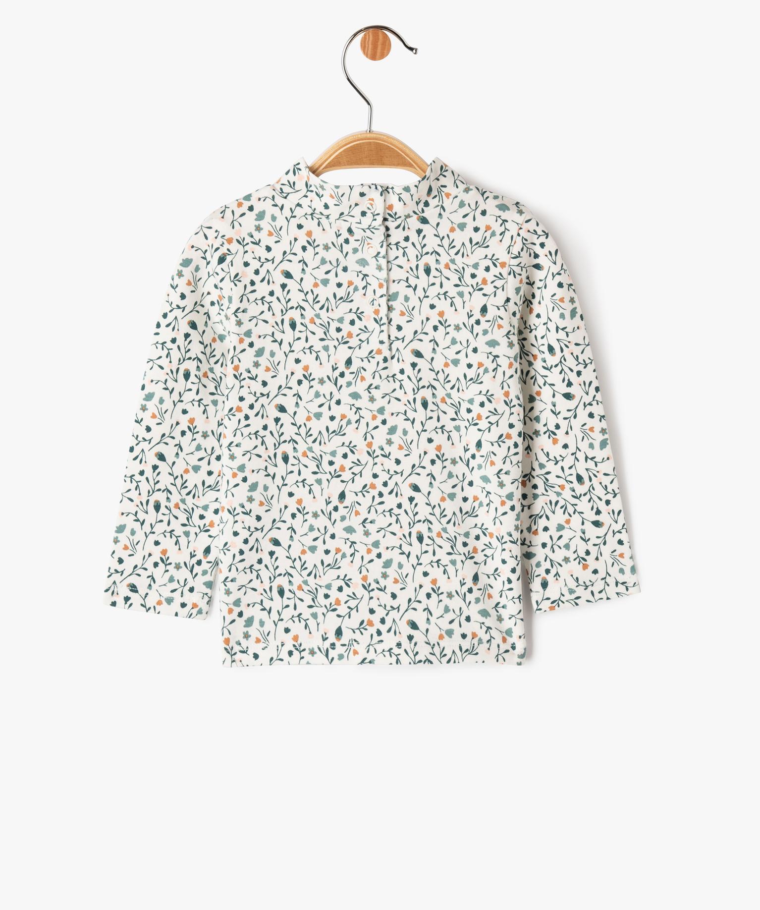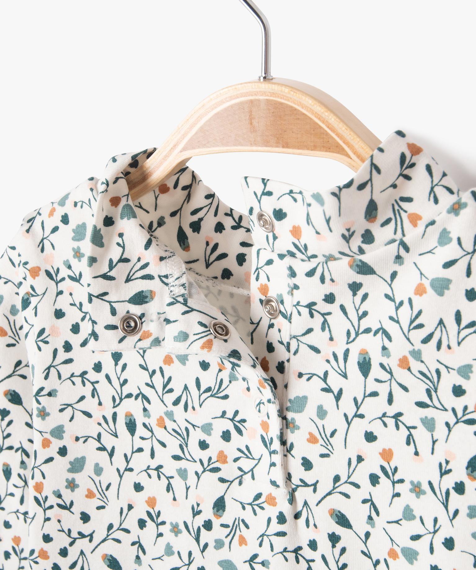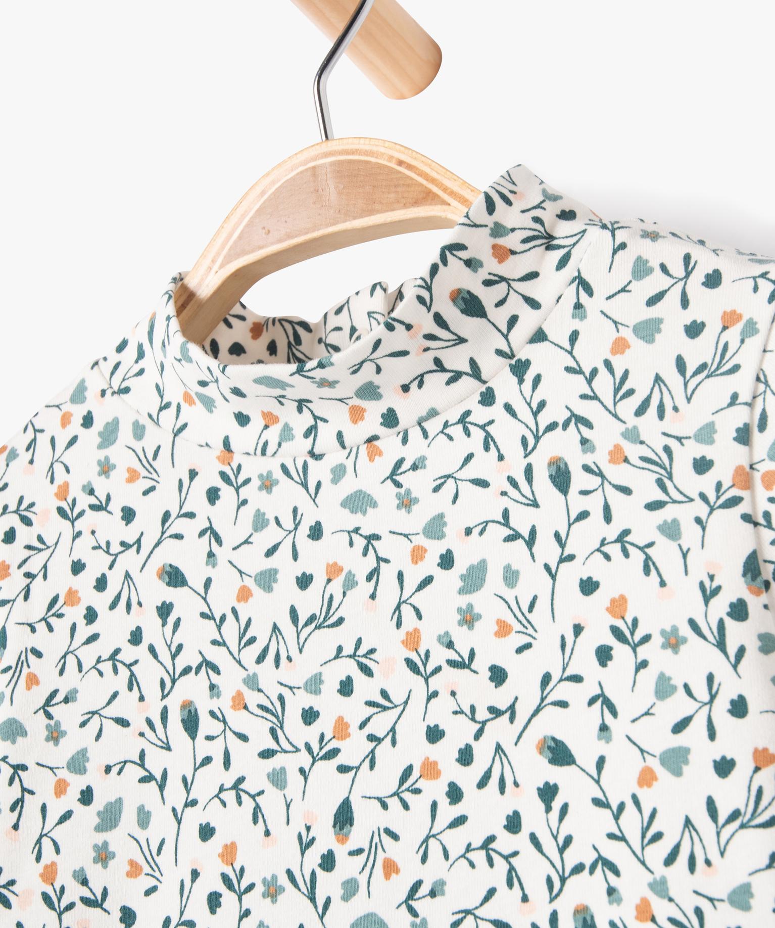 Tee-shirt manches longues à col montant imprimé fleuri bébé fille blanc