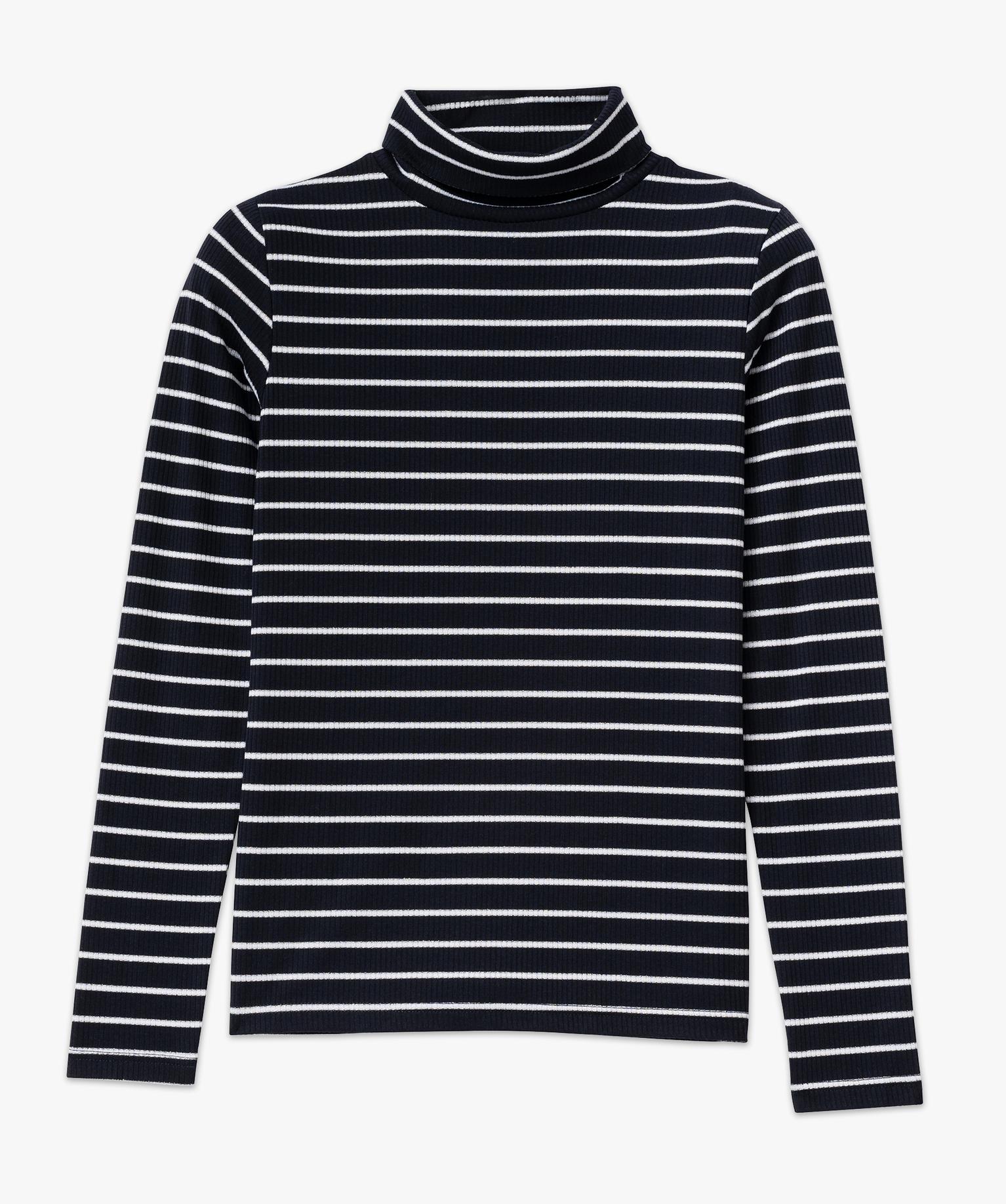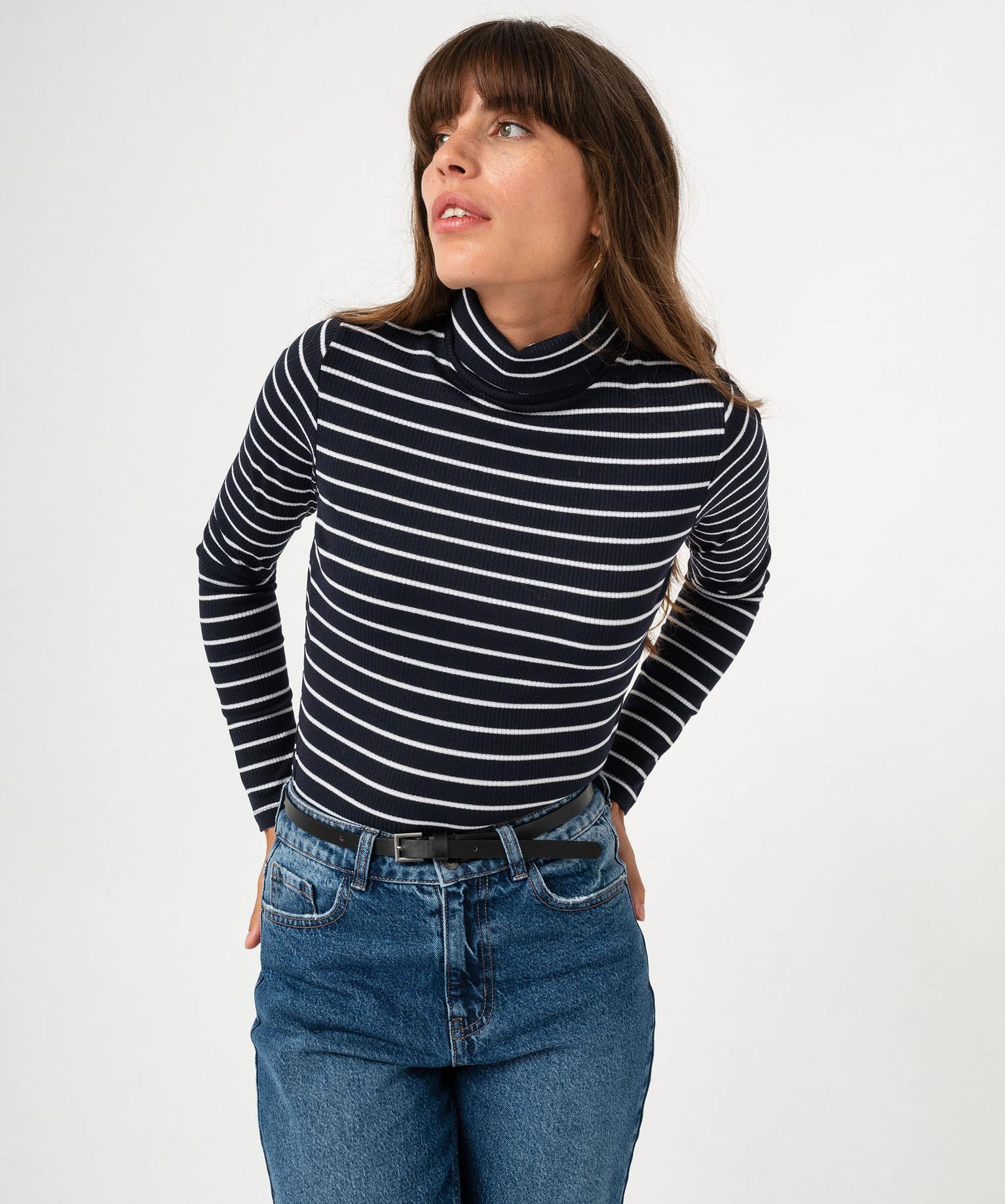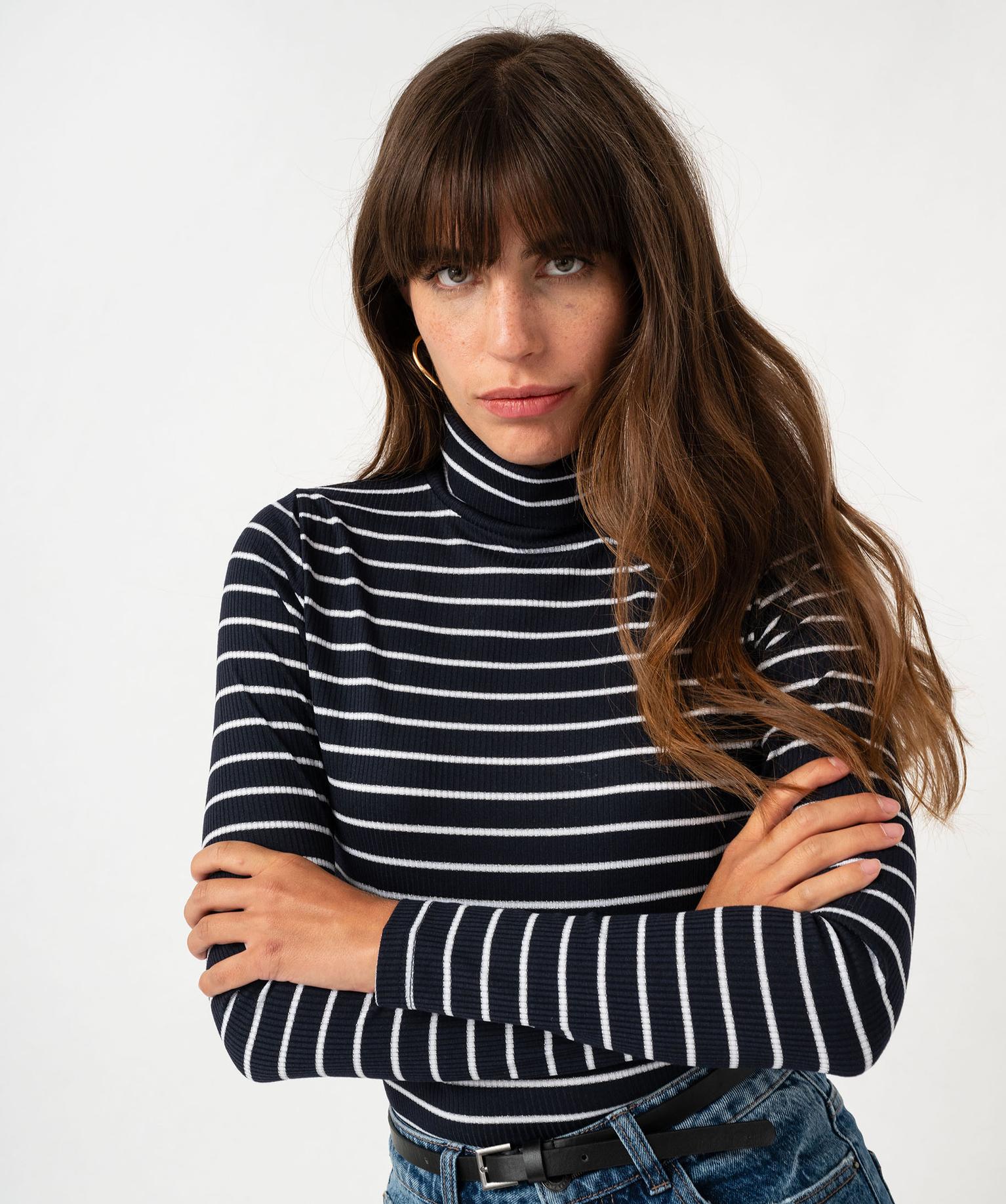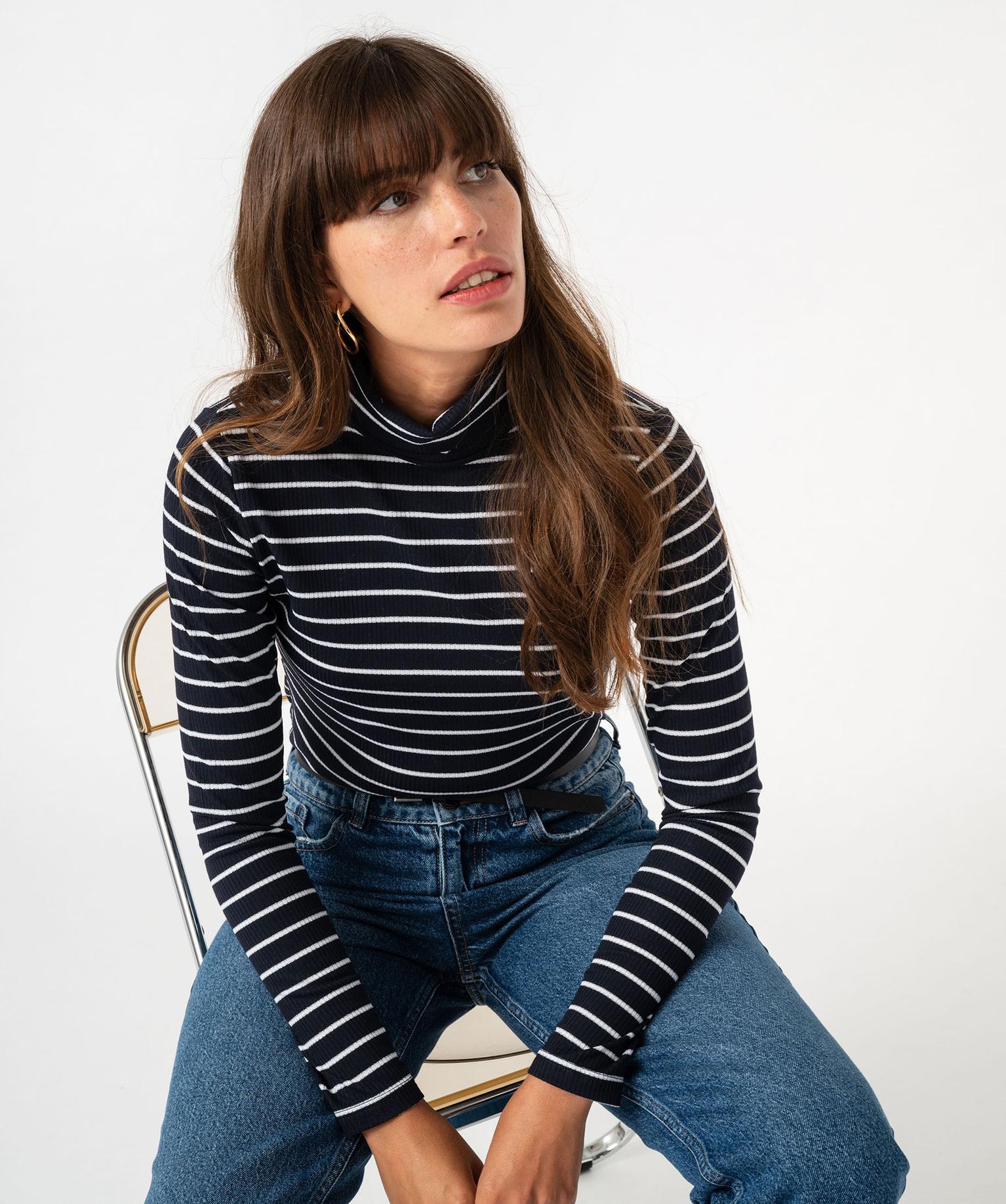 Tee-shirt manches longues à col roulé en maille côtelée rayée femme[MISSING] raye