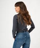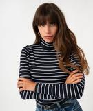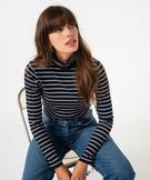 Tee-shirt manches longues à col roulé en maille côtelée rayée femme raye