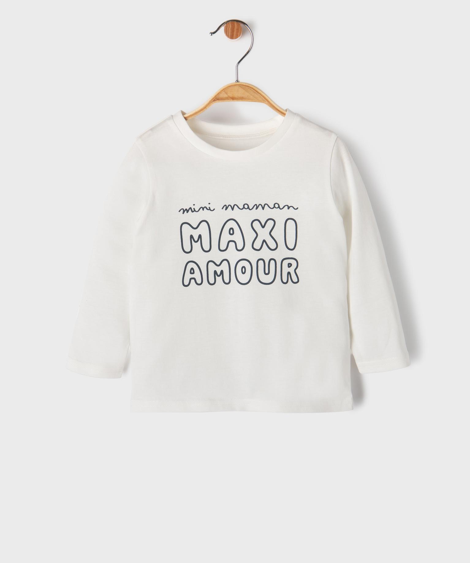 Apportez une touche de tendresse aux tenues de votre enfant avec ce tee-shirt à manches longues orné d’un message touchant sur le buste. Ce tee-shirt bébé garçon est confectionné en coton doux et agréable sur la peau. Il présente un design intemporel : coupe droite, col rond en bord-côte, base droite, tout pour un confort optimal. Un tee-shirt à message facile à associer avec tous les bas du vestiaire. Dos uni.