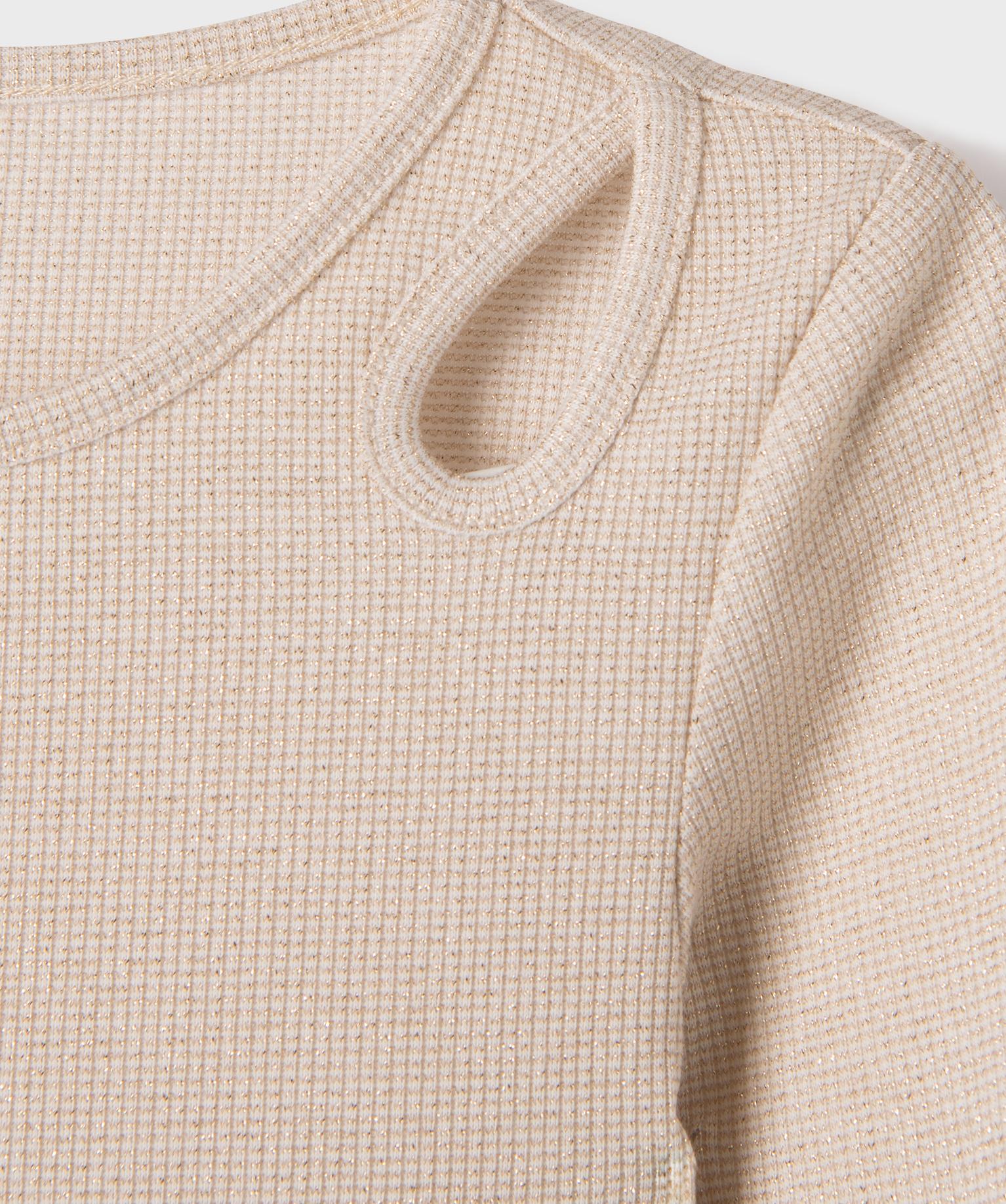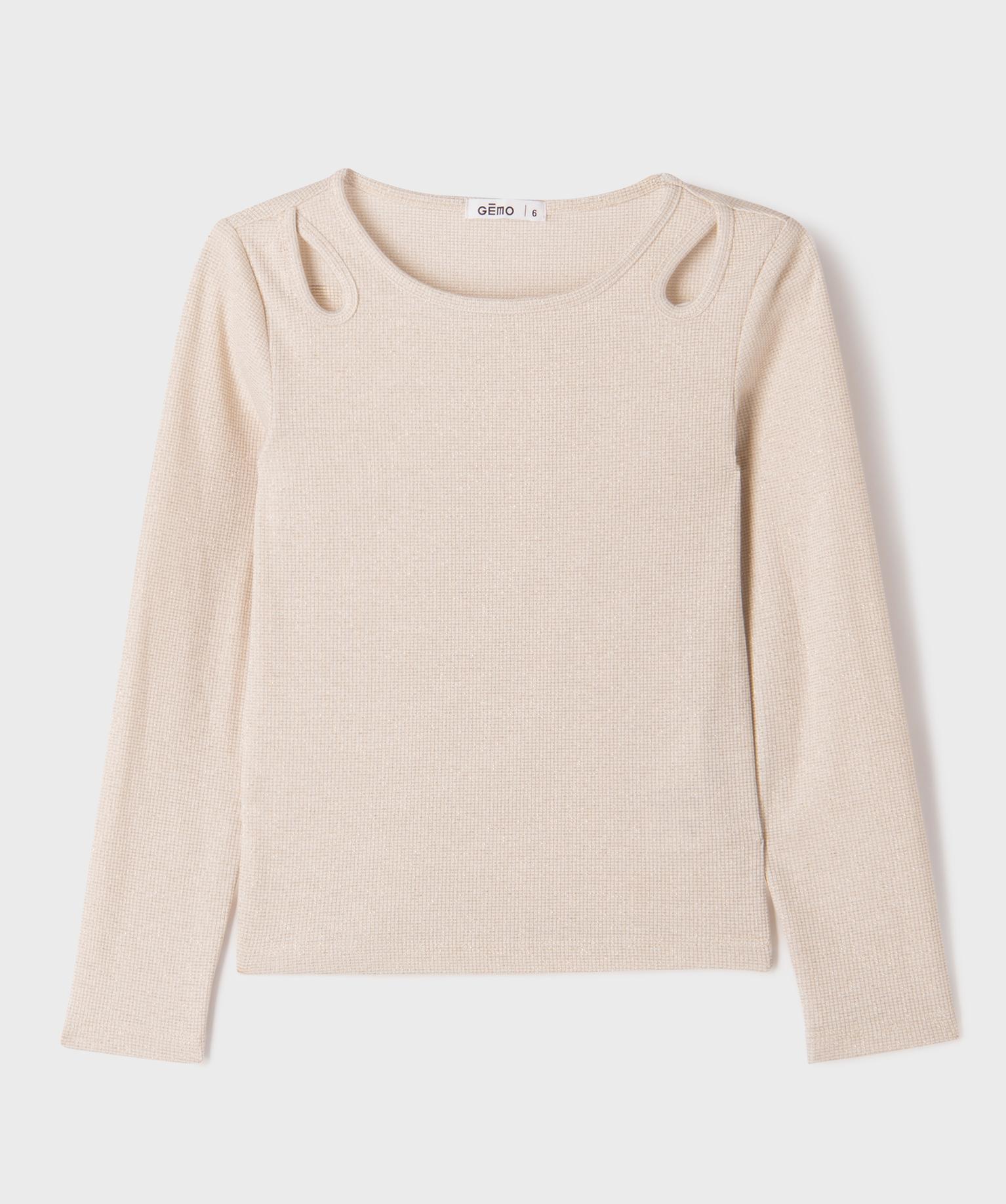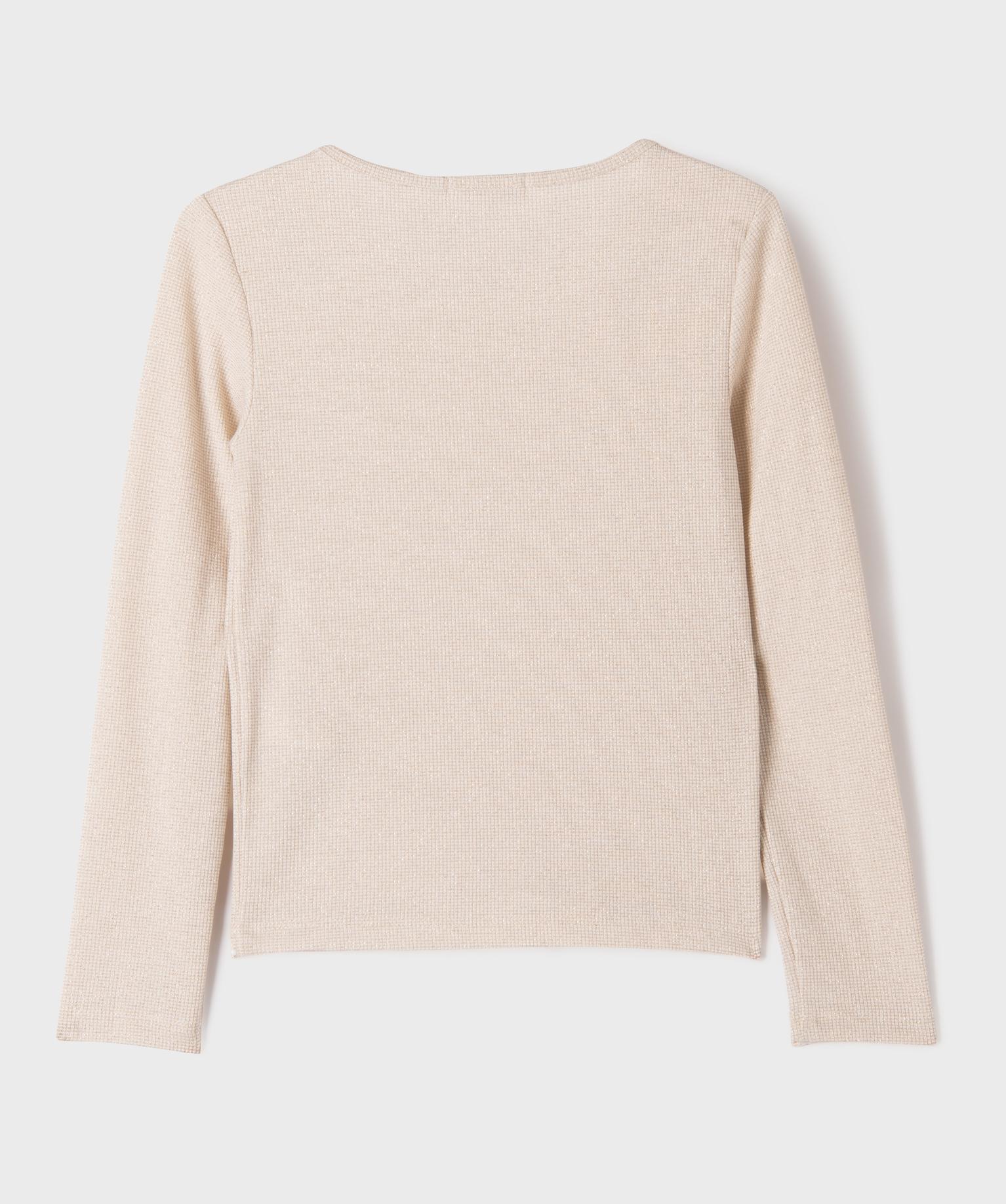Un tee-shirt à manches longues qui mêle éclat et originalité pour un look scintillant et festif ! Ce tee-shirt pour fille se distingue par son délicat fil métallisé qui apporte une touche de brillance irrésistible. Les perforations délicates sur les épaules ajoutent une note tendance et légèrement audacieuse, parfaite pour les jeunes filles au style affirmé. Confortable et facile à porter, ce tee-shirt scintillant s’associe aussi bien avec un pantalon en toile qu’avec une jupe pour composer des tenues de soirée élégantes.
