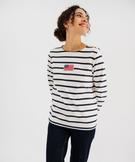 Tee-shirt manches longues à rayures et épaule boutonnée femme - LuluCastagnette ecru