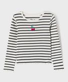 Tee-shirt manches longues à rayures et finition roulottée fille blanc