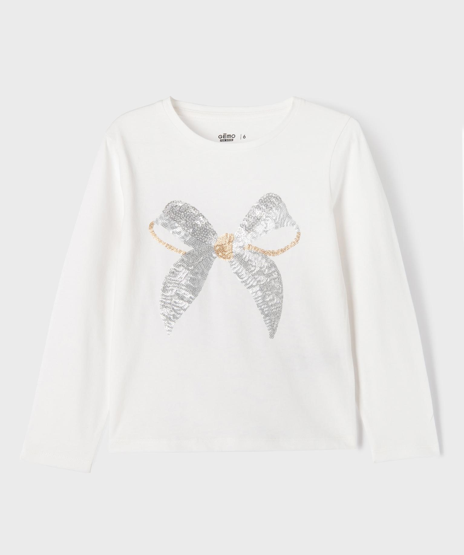Tee-shirt manches longues à sequins brillants fille blanc