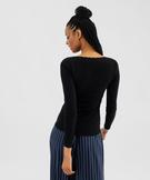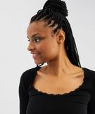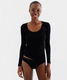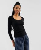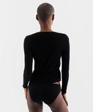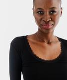 Tee-shirt manches longues avec col rond en dentelle femme noir