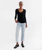 Un tee-shirt à manches longues très élégant avec son large col rond bordé de dentelle. Confectionné en maille côtelée extensible contenant de la viscose, il convient à toutes les silhouettes et offre un grand confort. Un haut lingerie femme revisité dans une version chic et romantique à porter comme haut de pyjama ou comme tee-shirt sous une veste de tailleur.