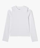 Tee-shirt manches longues avec épaules dénudées fille blanc