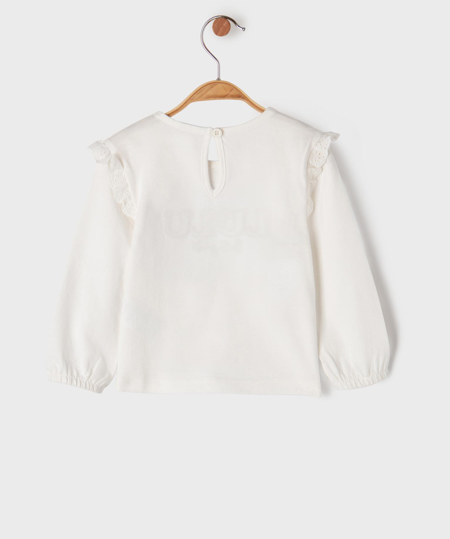 Tee-shirt manches longues avec épaules volantées bébé fille - LuluCastagnette blanc