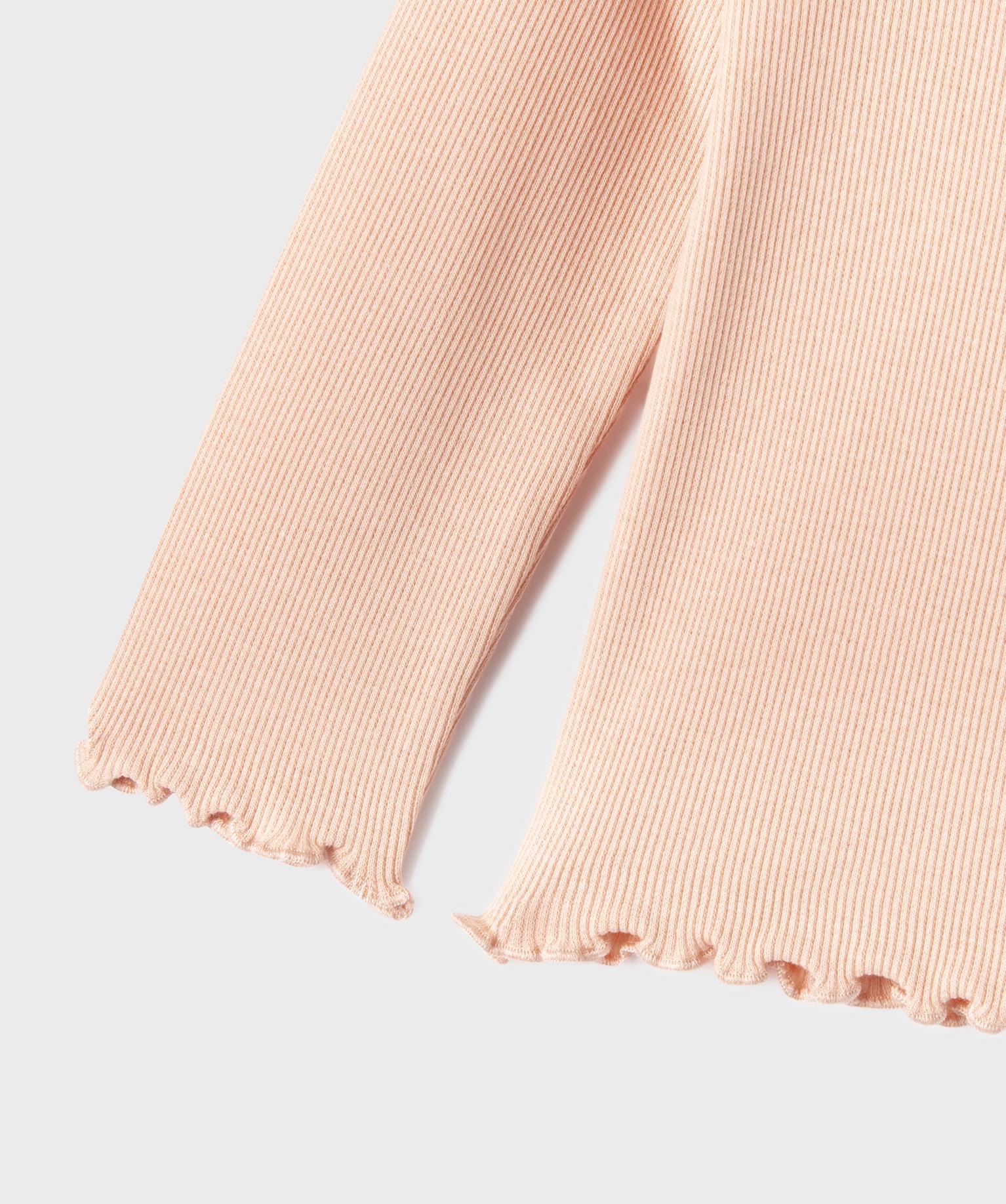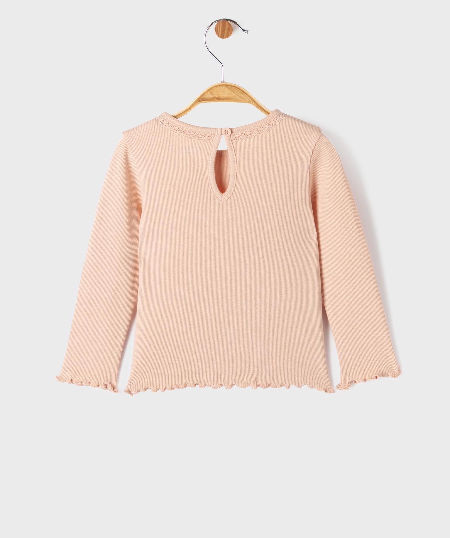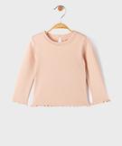 Tee-shirt manches longues avec finitions froncées bébé fille rose clair