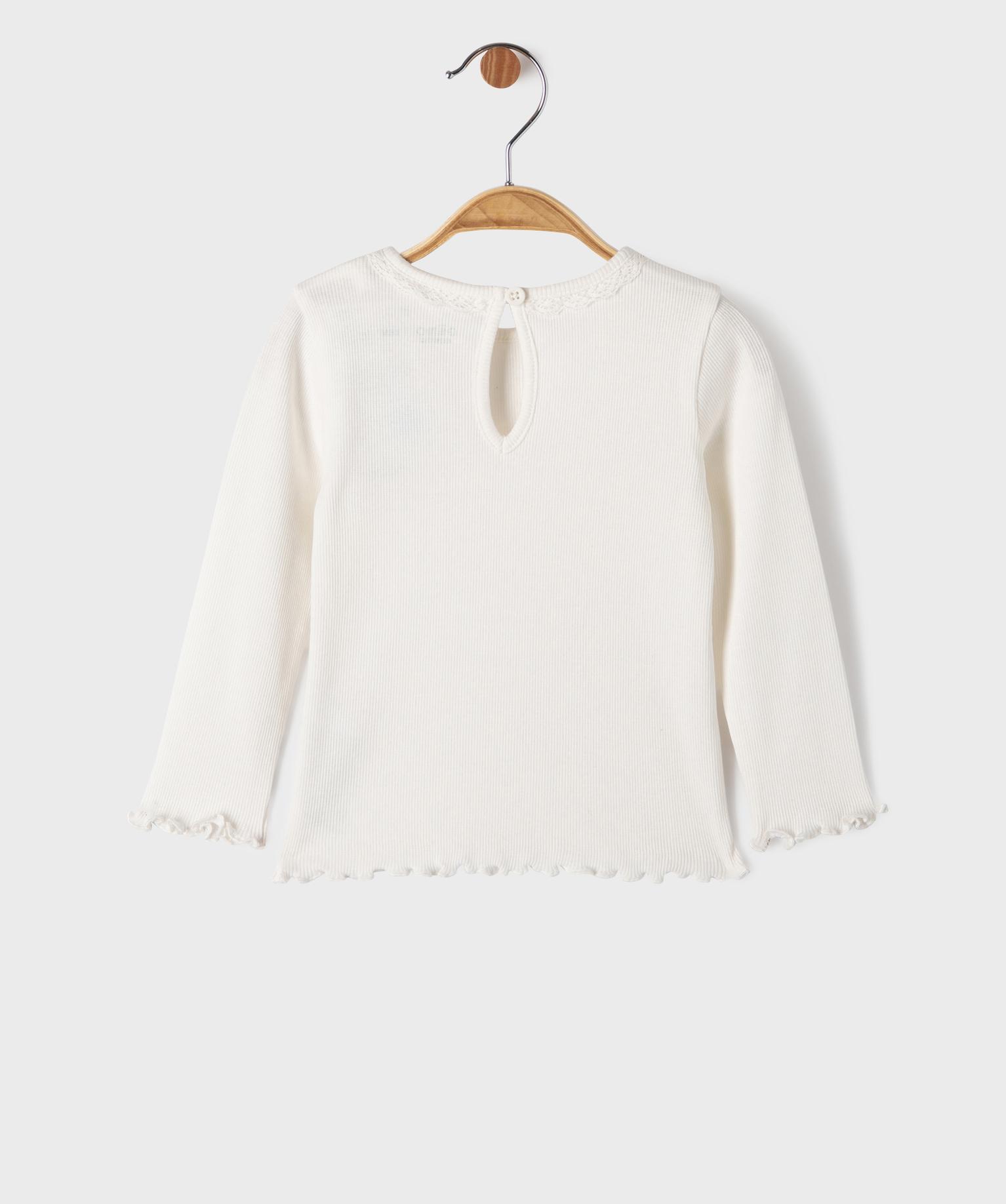 Tee-shirt manches longues avec finitions froncées bébé fille blanc