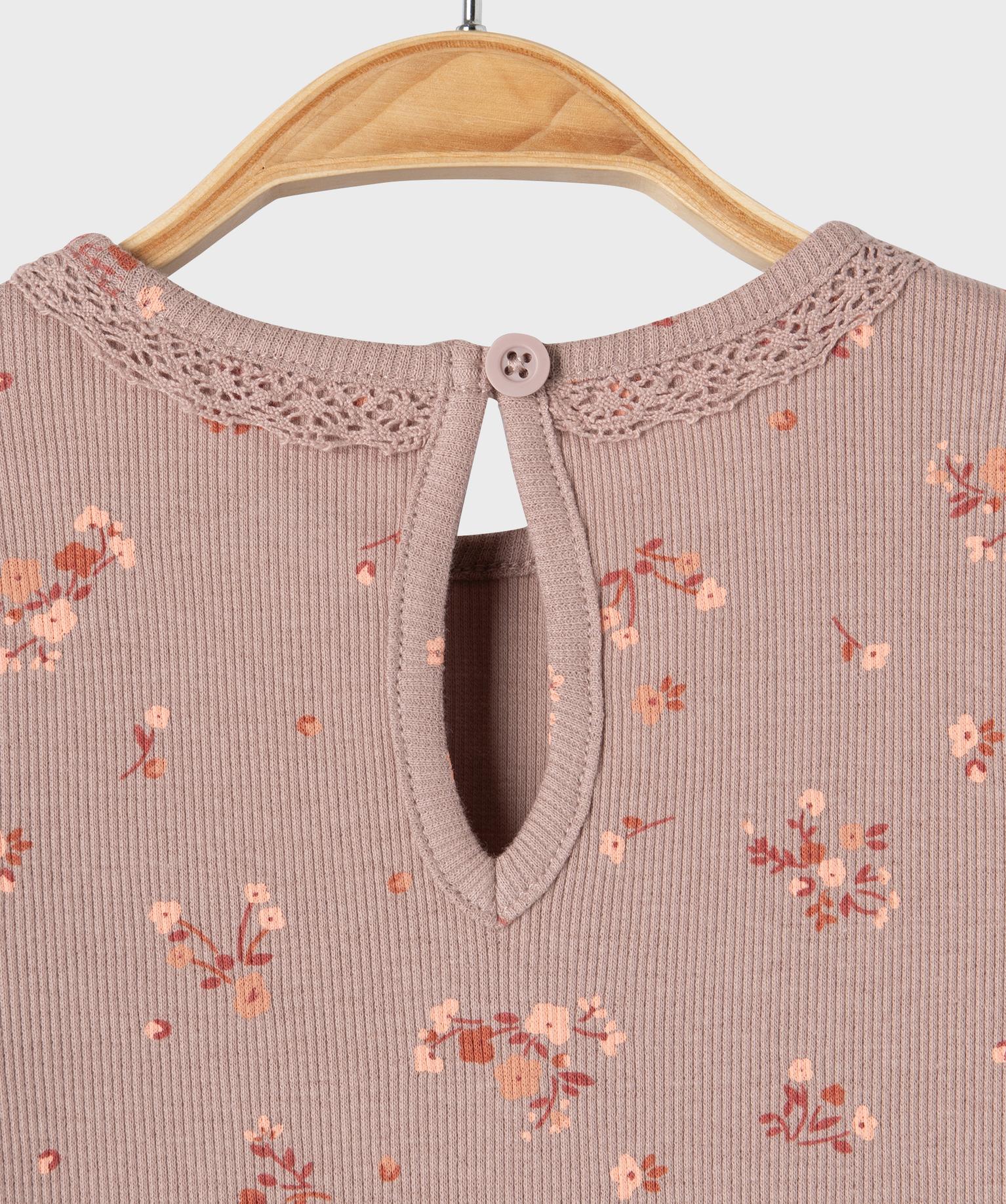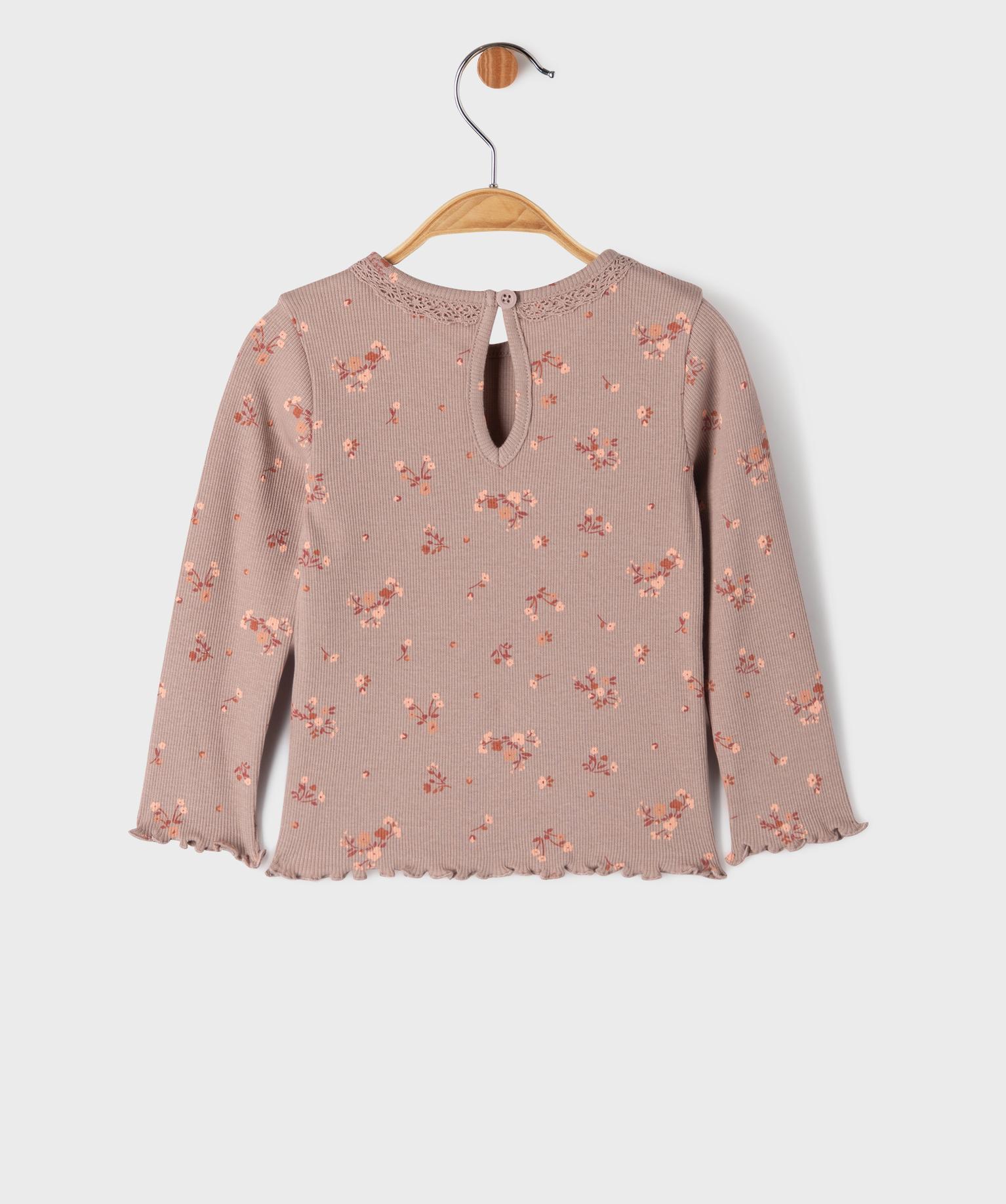 Tee-shirt manches longues avec finitions froncées bébé fille beige taupe