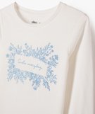 Ce tee-shirt à manches longues illuminera de nombreux looks avec son sublime motif pailleté sur le buste, affichant un message positif dans un joli cadre fleuri. Un tee-shirt fille idéal pour ajouter une touche de charme à un jean, un pantalon en toile ou une jupe. Il ajoutera une touche d’éclat dans la collection de basiques des jeunes fashionistas.