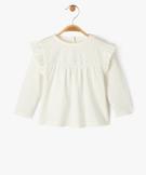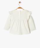 Tee-shirt manches longues avec volants aux épaules bébé fille ecru