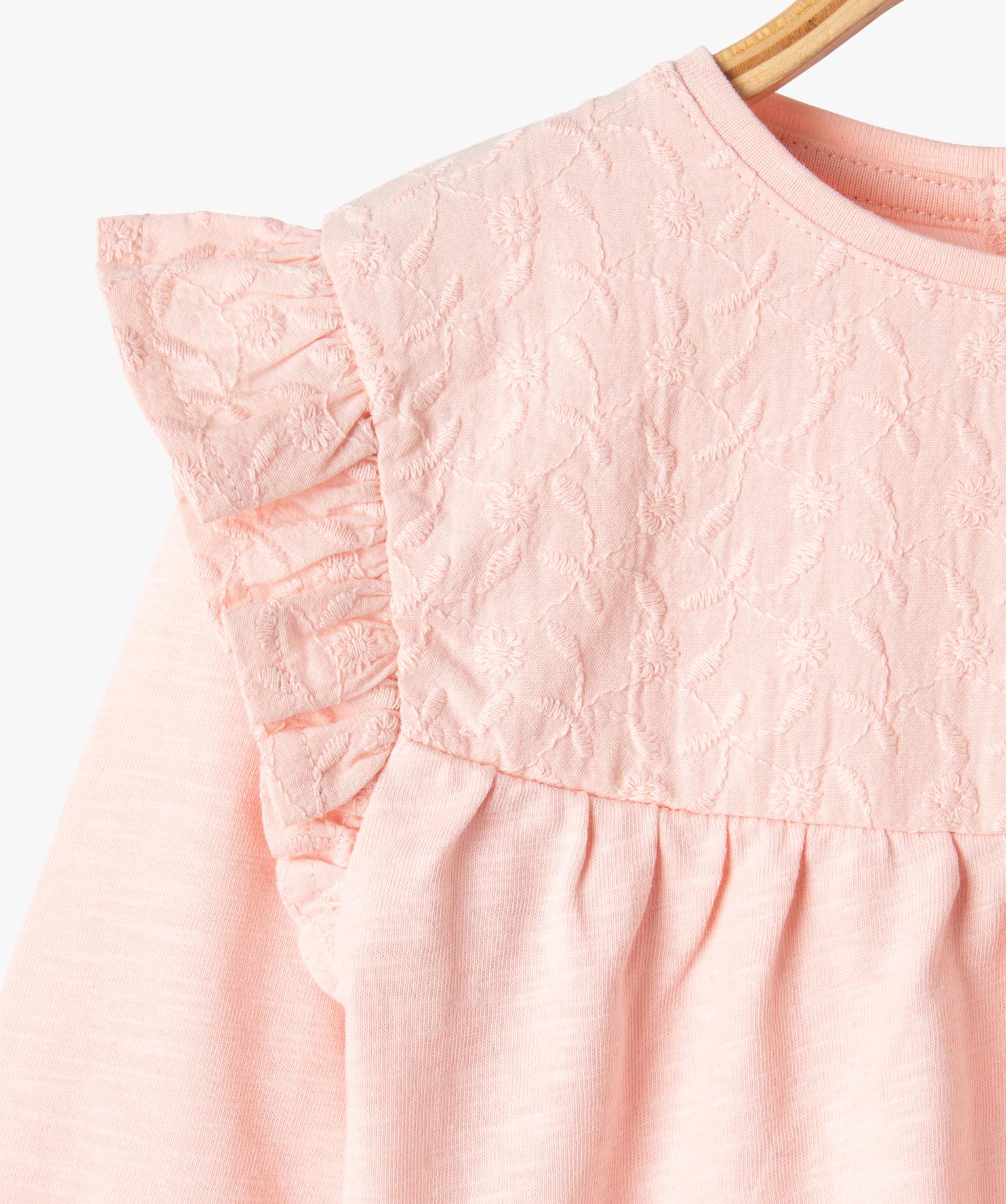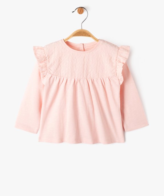 Tee-shirt manches longues avec volants aux épaules bébé fille rose chine